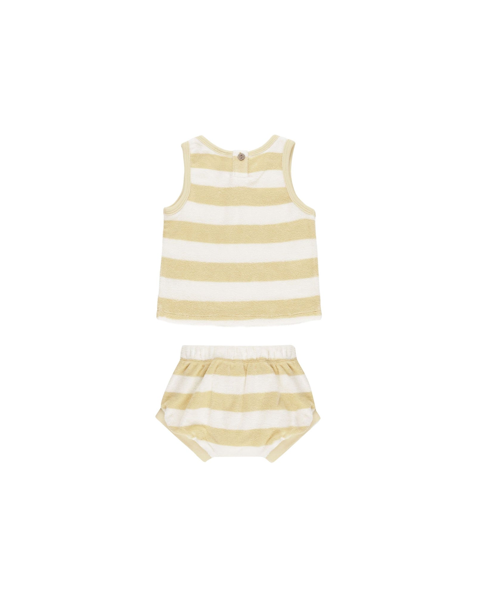 Quincy Mae Terry Tank + Short Set - Yellow Stripe