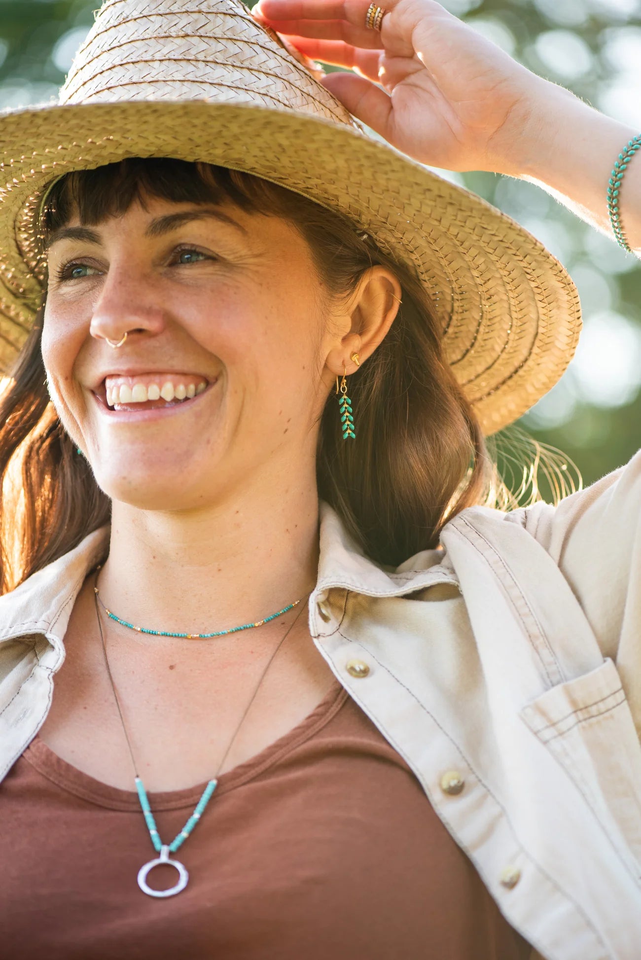 Bronwen Enamel Cascade Earrings - Short Aqua