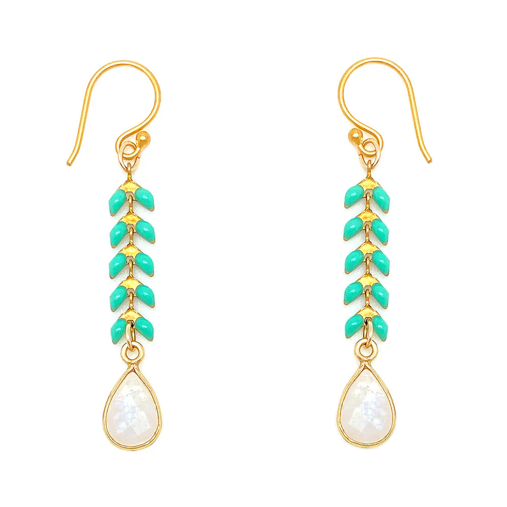 Bronwen Enamel Cascade Drop Earrings - Aqua