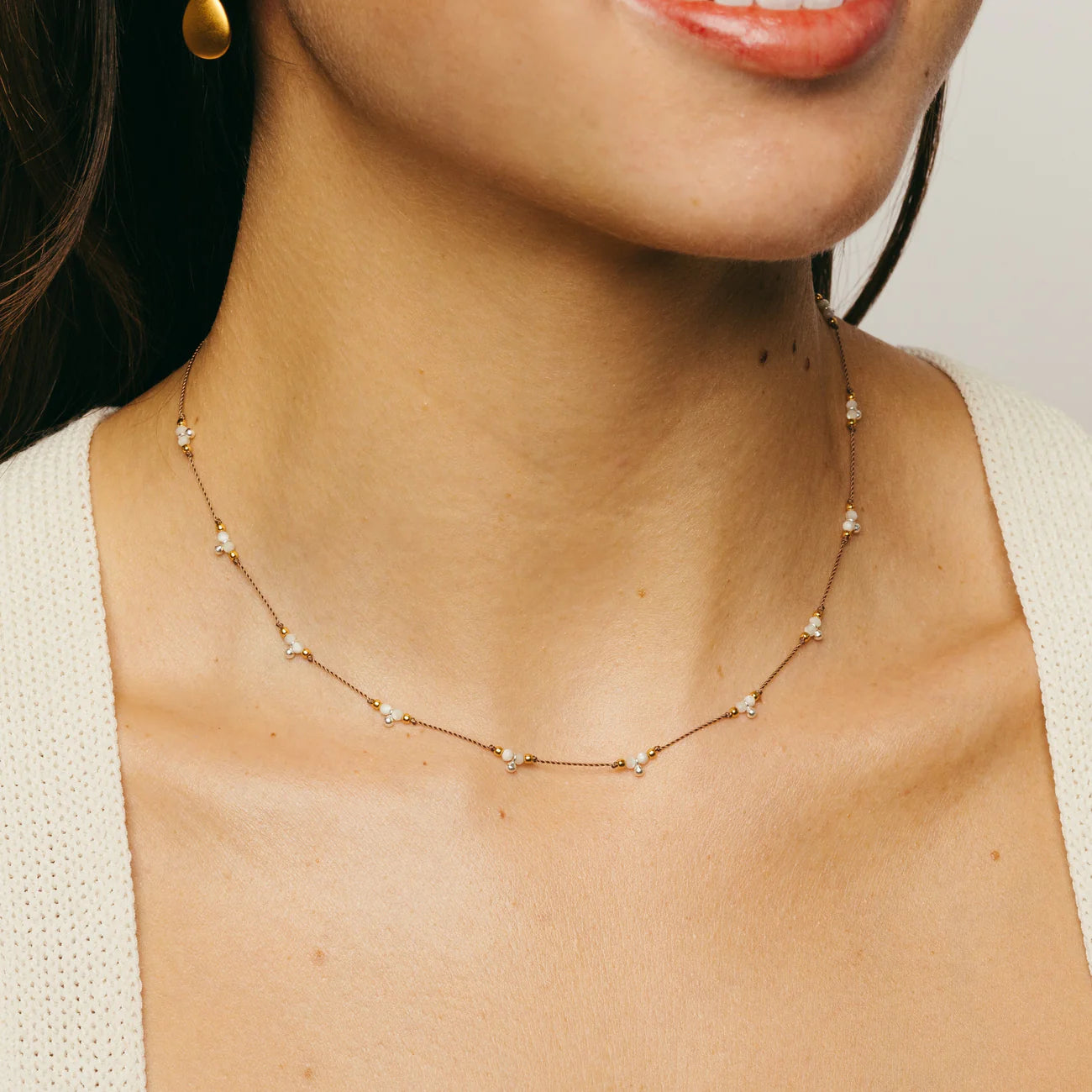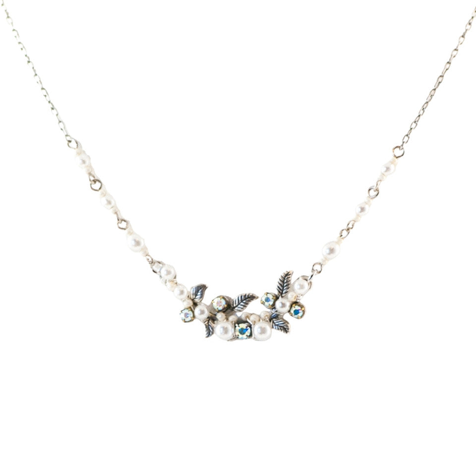 Firefly Petite Flora Necklace w/Glass Pearls-White