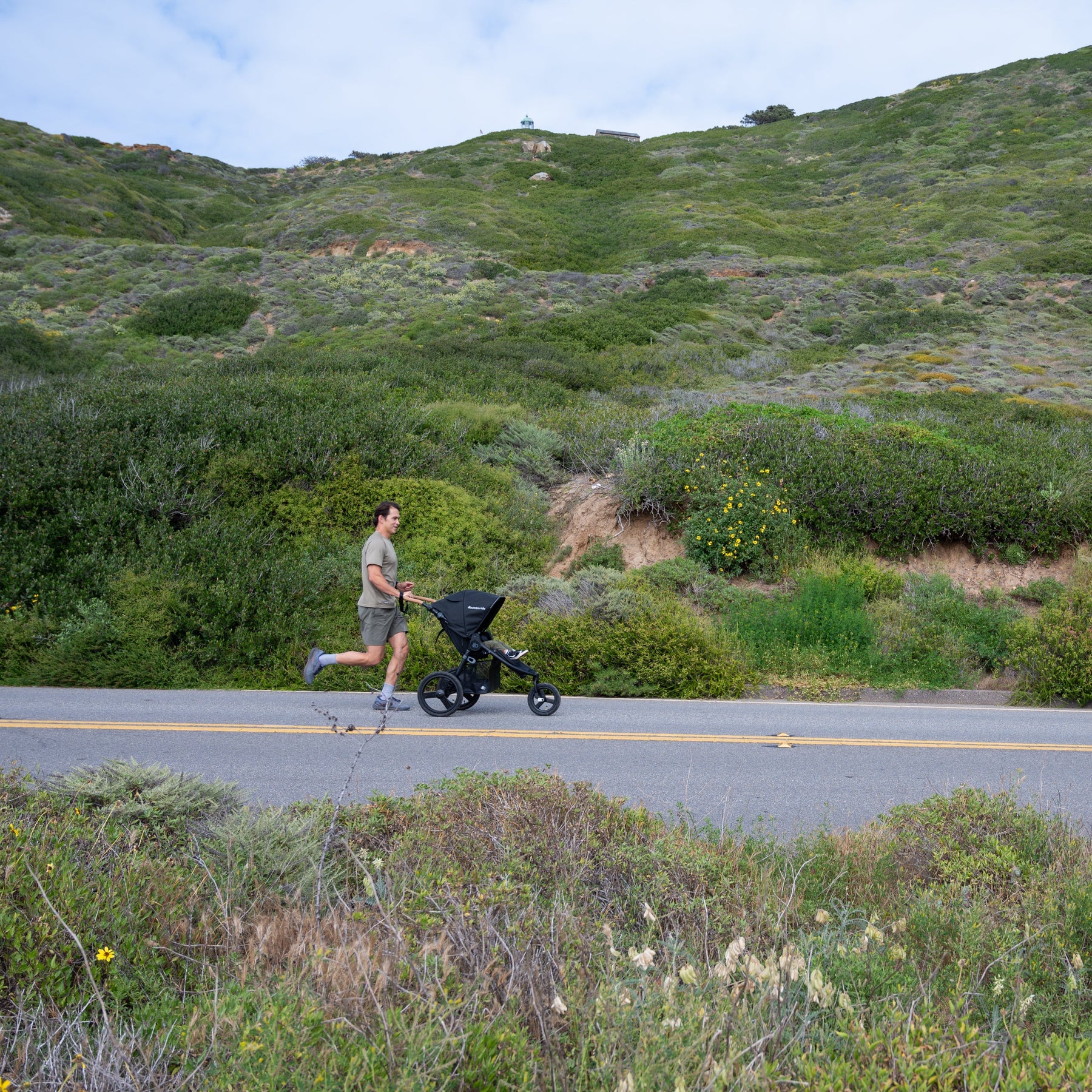The Bumbleride Speed is a running/jogging stroller that combines performance and function for longer distance runners. Speed is a purpose-built running companion equipped with 3 modes on the front wheel called Speed3 Steering: run, jog or walk. It comes complete with extra reflective elements so you can get out whenever life calls for adventure. Debuting in 2024 with a 100% natural and non-toxic cork handle and an adjustable footrest. Responsibly made and manufactured.