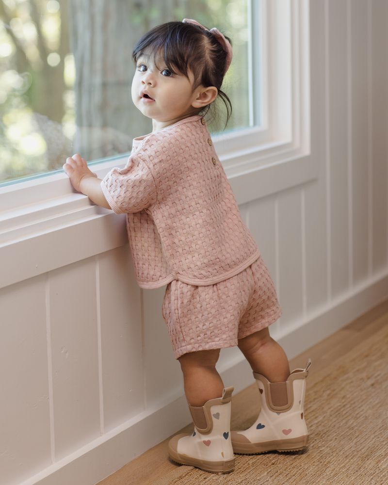 Featuring our ‘blush’ hue. This pretty pink is the perfect pop of color for your little gal’s wardrobe.