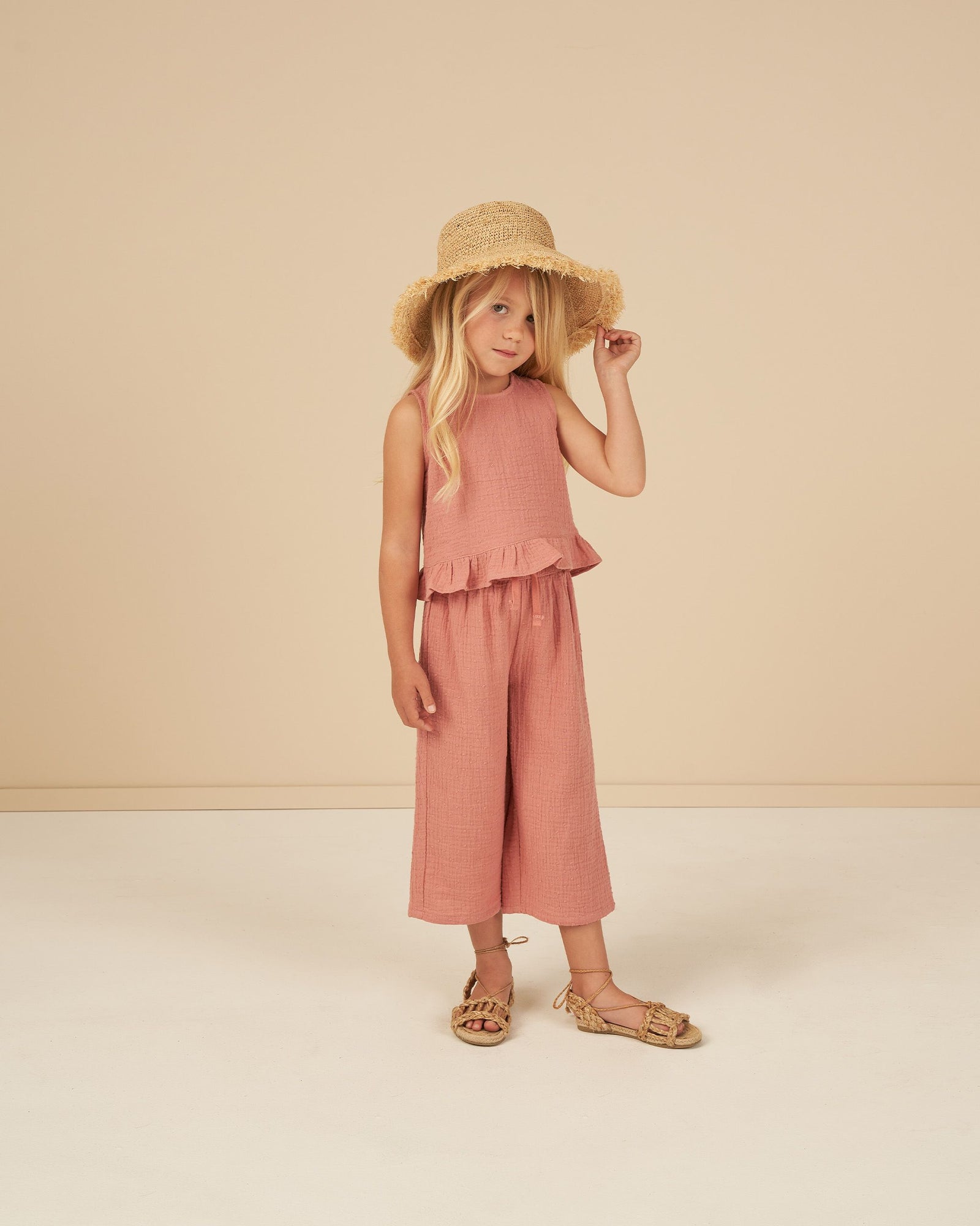 Rylee + Cru Oceanside Top + Wide Leg Pant Set - Lipstick