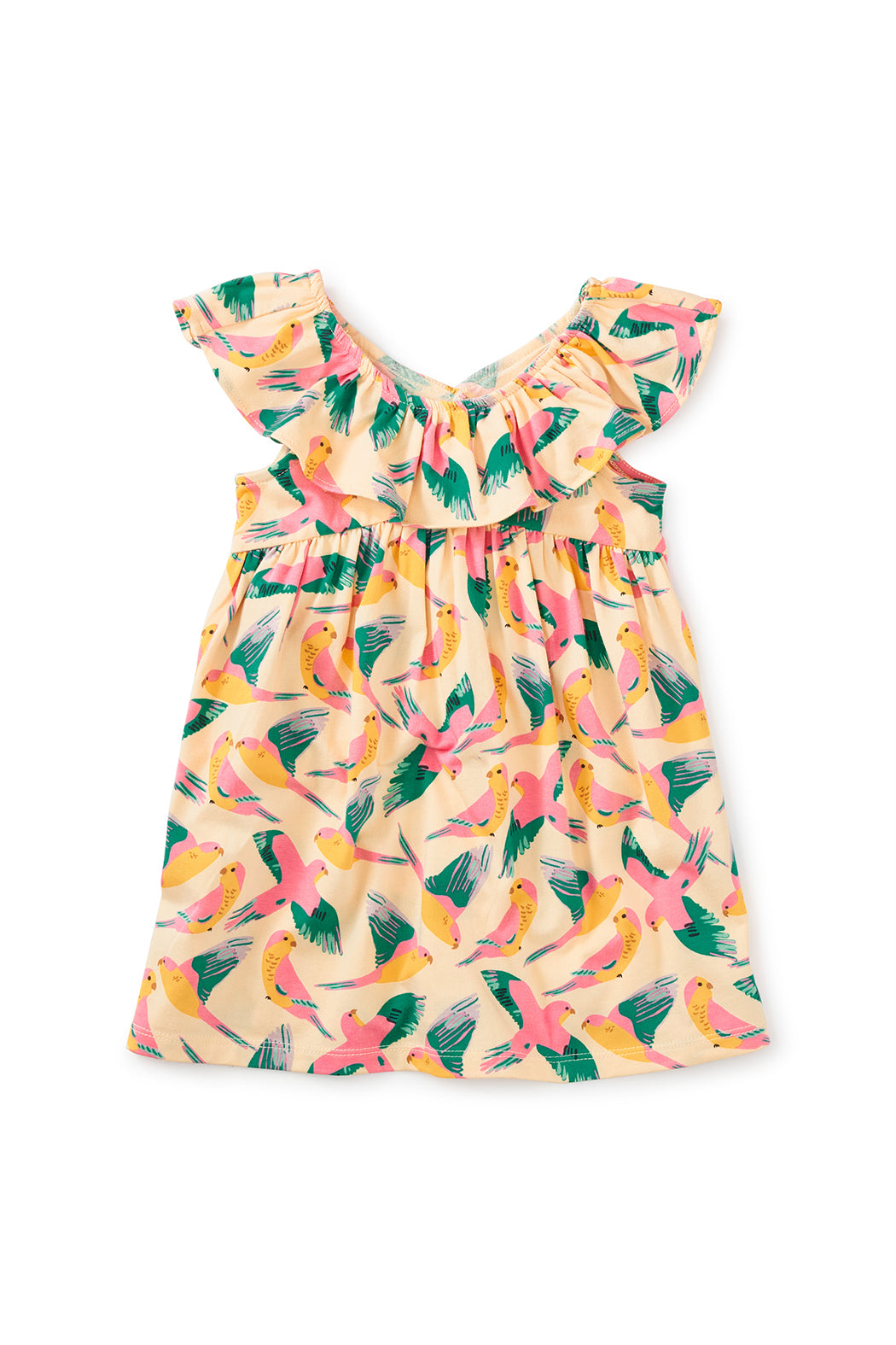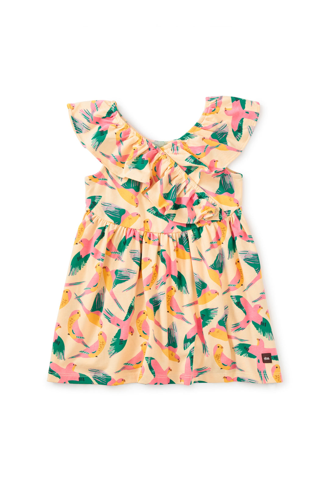Tea Collection Ruffle Neck Baby Dress - Parrot Polka