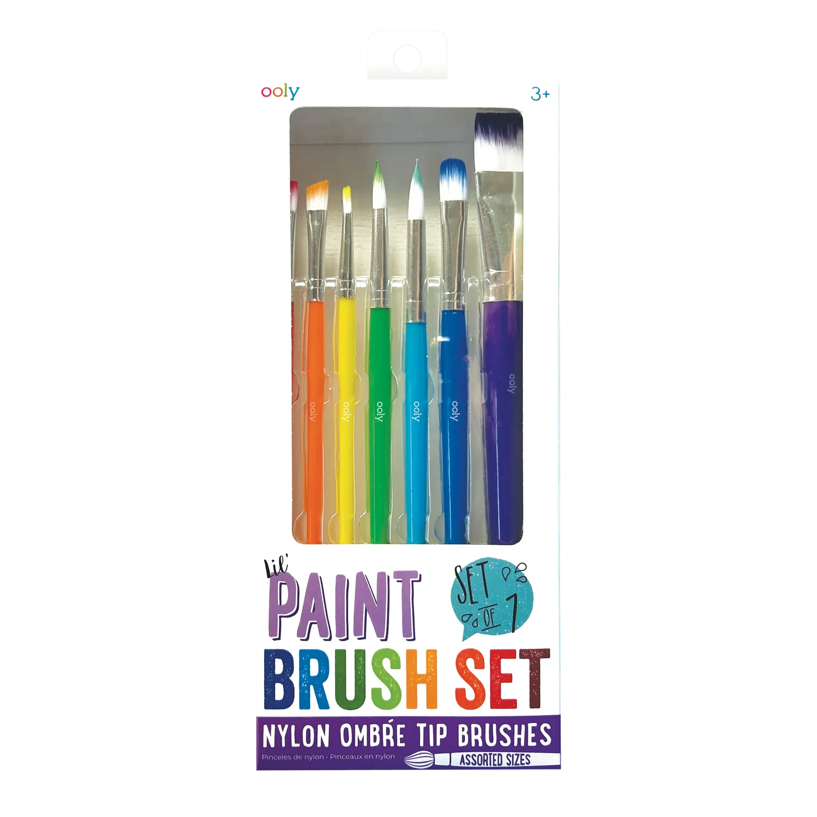 Every creative artist needs to have brushes as part of their tool set for their artistic endeavors. The lil Paint Brush Set makes a great all-in-one set with 7 paintbrushes of different sizes and styles including small flat, small angle, extra small round, medium round, medium filbert and large flat; pretty much anything you need to tackle your next painting project. The lil Paint Brush Set features nylon brushes with gradiated colors for a really fun ombre effect. They're easy to clean too. Just rinse with water, blot dry and store them brush side up.