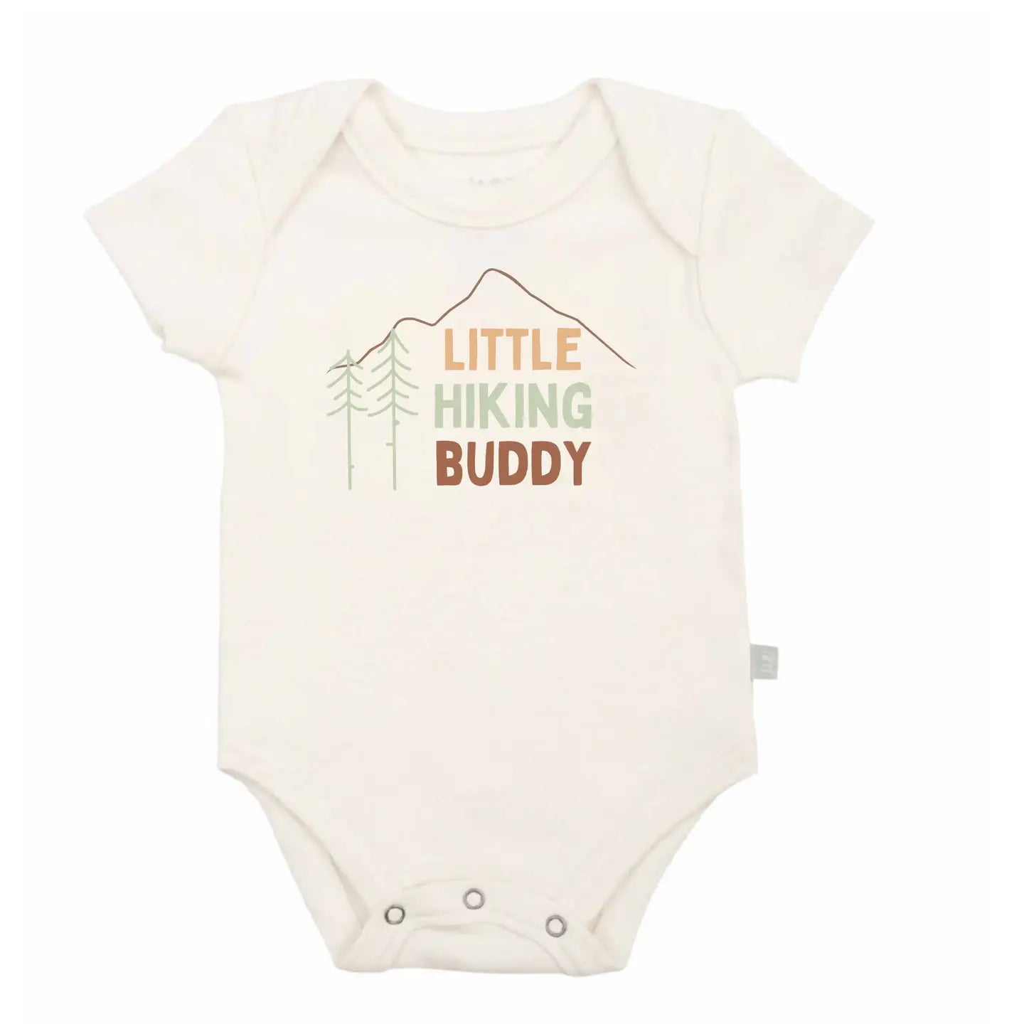 Meet your little hiking buddy in this adorable organic baby onesie, perfect for families who love the outdoors. Made from ultra-soft, breathable fabric, this organic cotton baby onesie is gentle on delicate skin and kind to the planet. Our GOTS certified baby onesie features easy-snap closures for quick diaper changes and all-day comfort. Explore the wild in style with organic baby clothes designed for adventure and everyday wear. * 100% organic cotton * G.O.T.S. certified * non-toxic, eco-friendly dyes * lead/nickel free snaps with coconut inserts * ethically made in India Also available in matching tee for an older sibling, cousin or friend