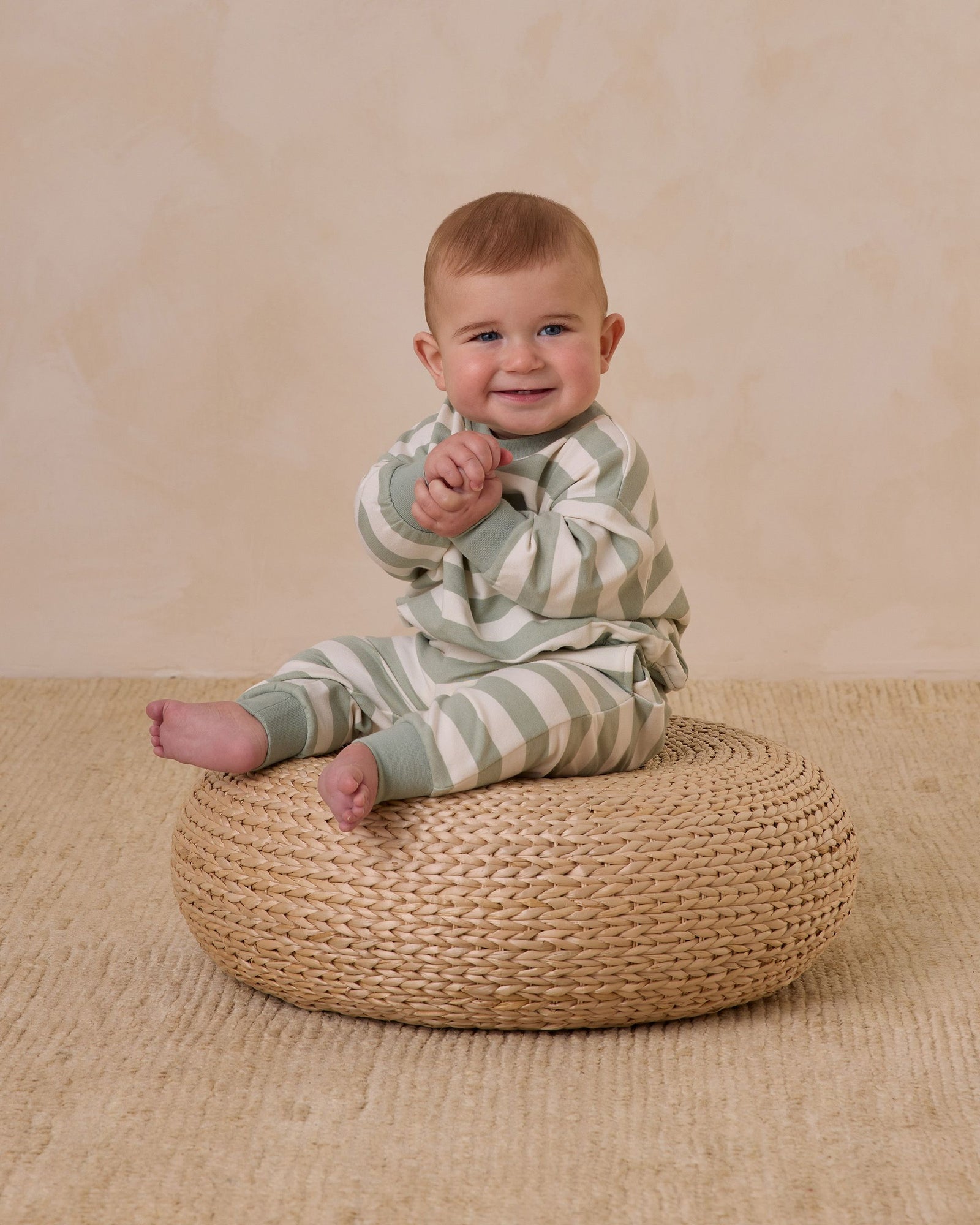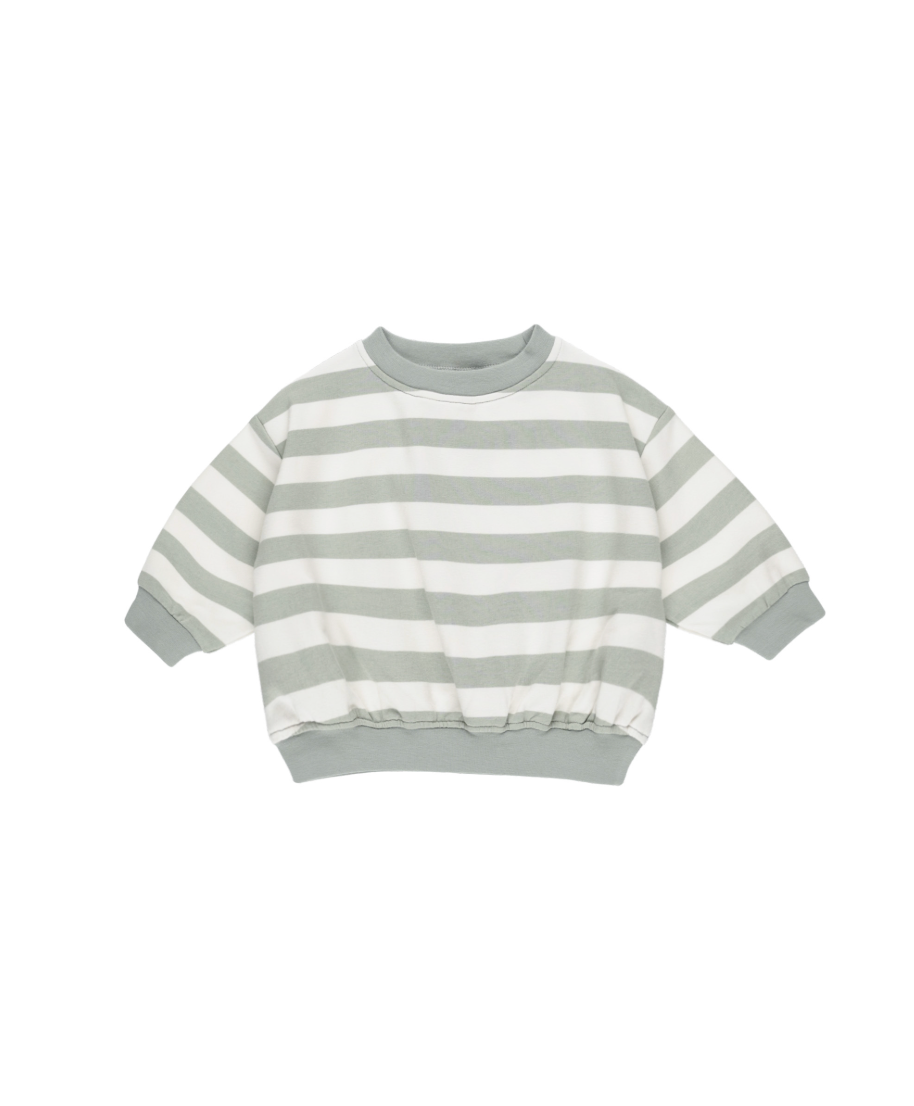 Quincy Mae Relaxed Sweatshirt + Sweatpant Set - Sage Stripe