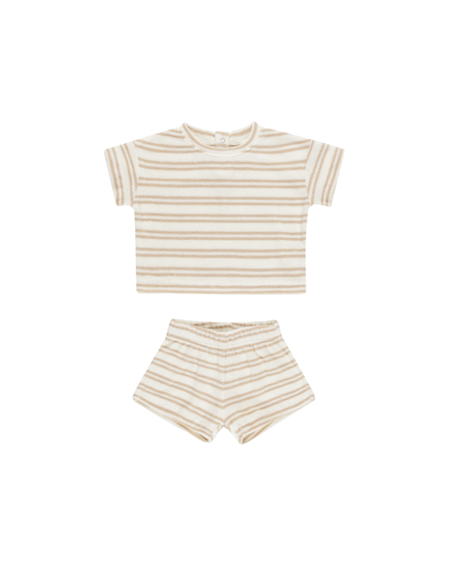 Quincy Mae Terry Tee + Shorts Set - Oat Stripe