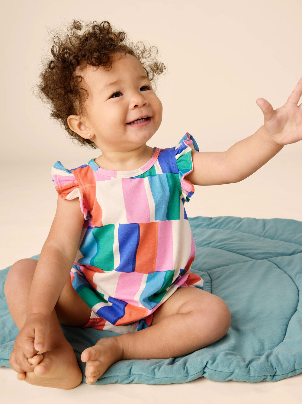 Tea Collection Ruffle Sleeve Pocket Romper - Tropical Gardenia
