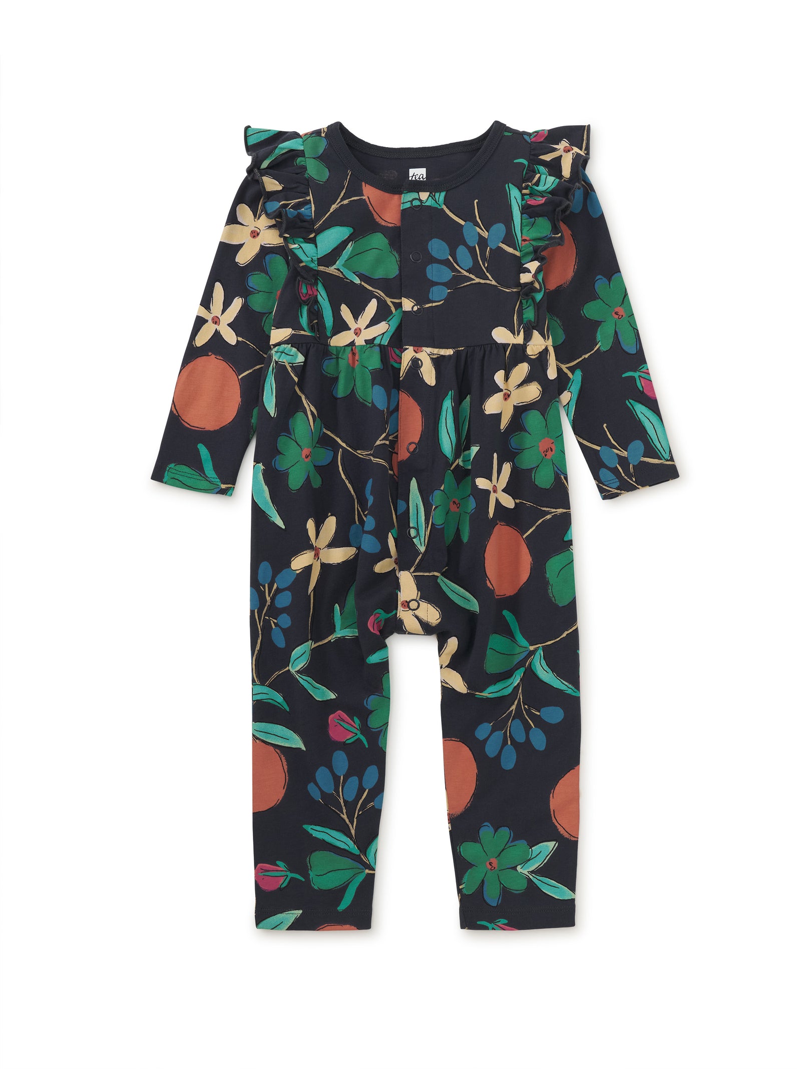 Tea Collection Snap Front Ruffle Baby Romper - Tea Floral