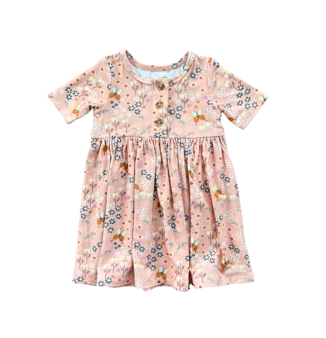 Babysprouts Short Sleeve Henley Dress - Butterfly Garden
