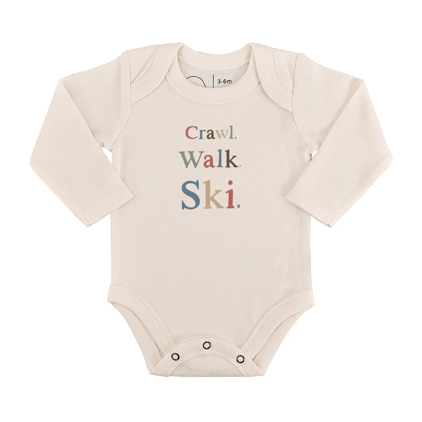 Finn + Emma Baby Long Sleeve Graphic Organic Bodysuit - Crawl Walk Ski