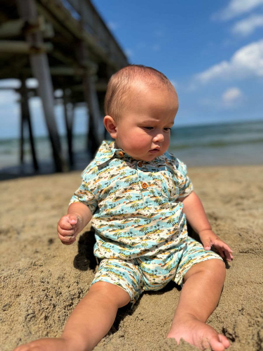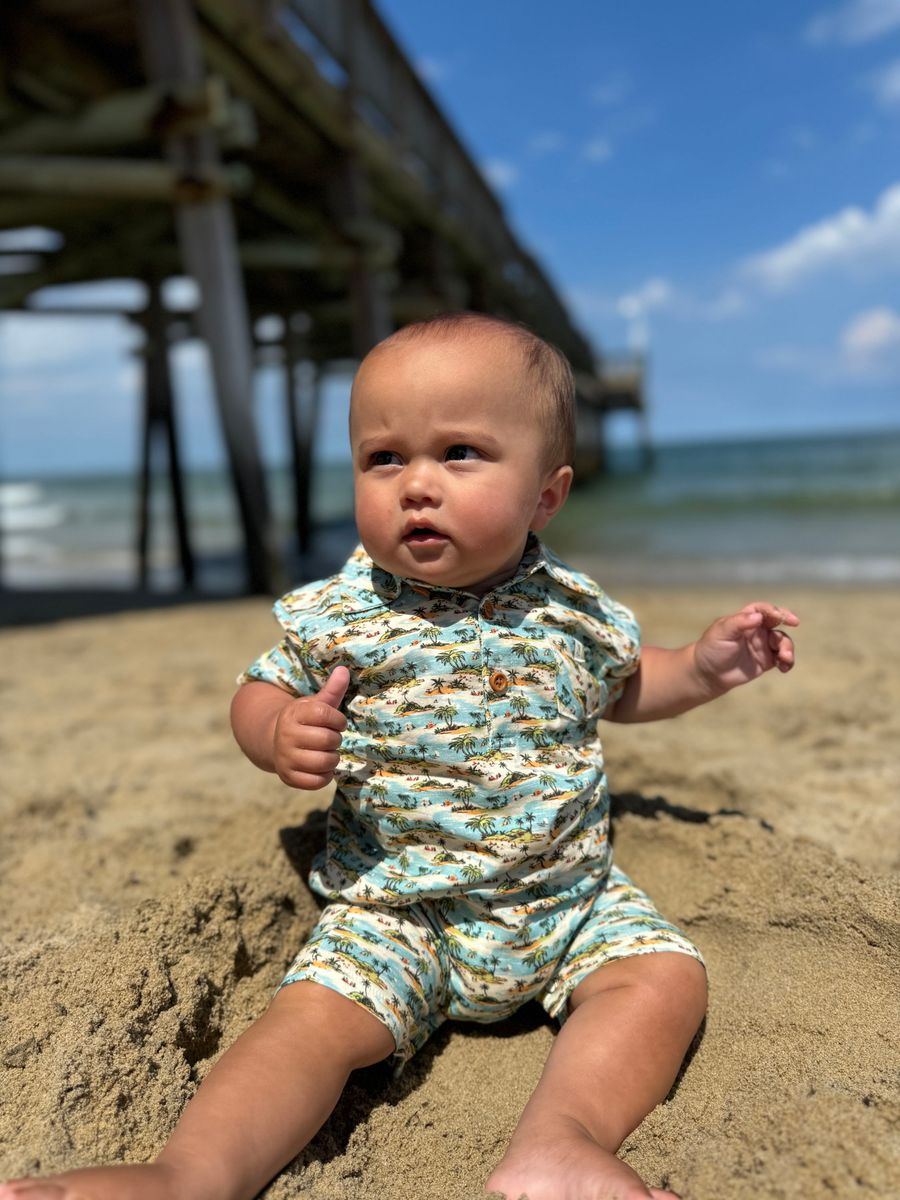 Me & Henry Molokai Printed Romper - Blue Islands