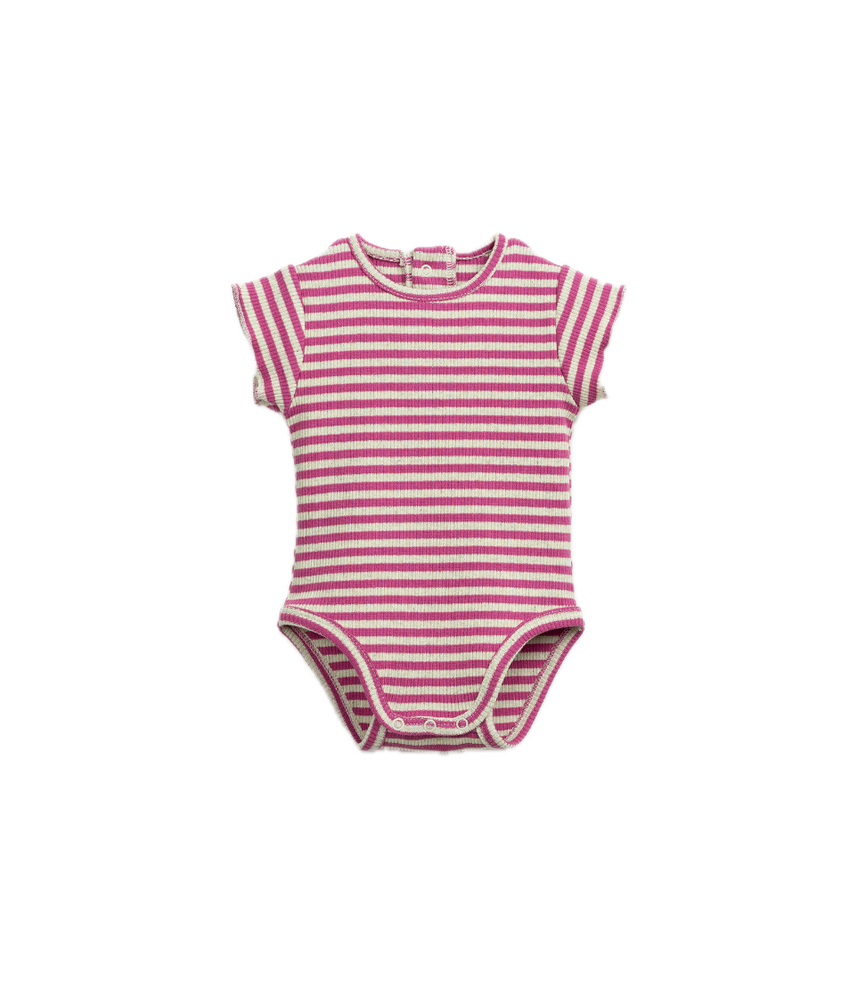Play Up Organic Striped Knit Bodysuit - Watermelon