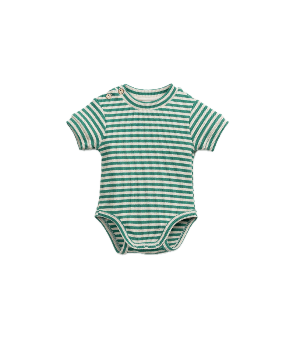 Play Up Organic Striped Bodysuit - Botanical Green