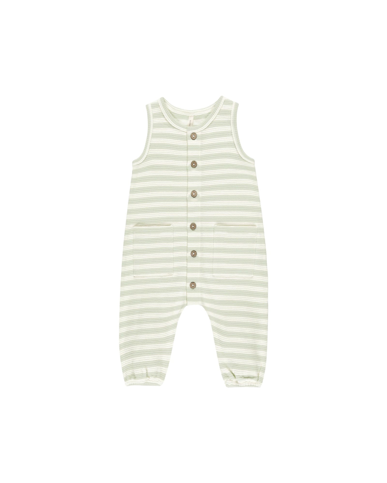 Quincy Mae Waffle Jumpsuit - Mint Stripe
