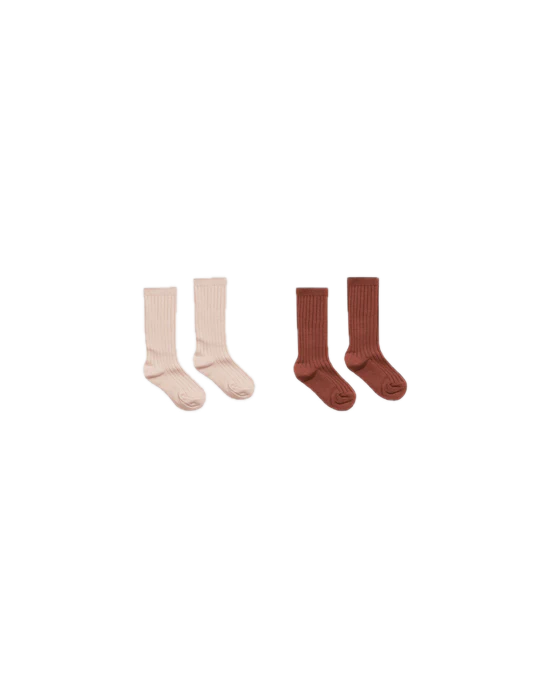 Rylee + Cru Ribbed Socks, 2-pack - Golden, Burgundy