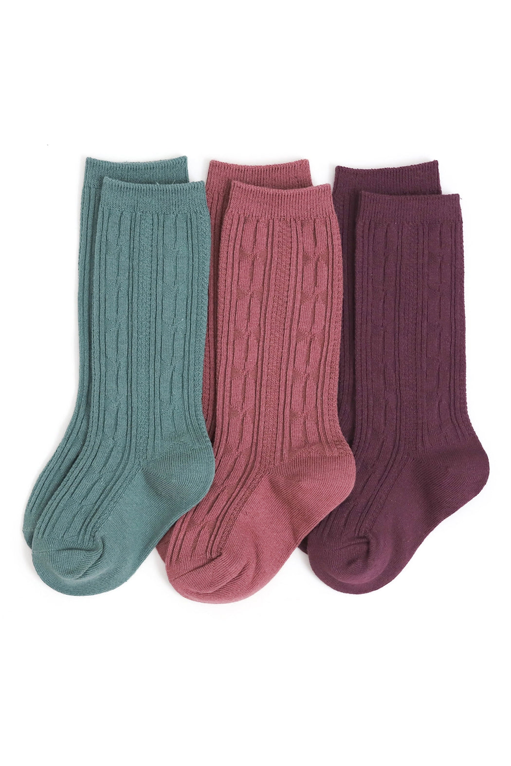 Little Stocking Co. Cable Knit Socks- Denali - 3 Pack