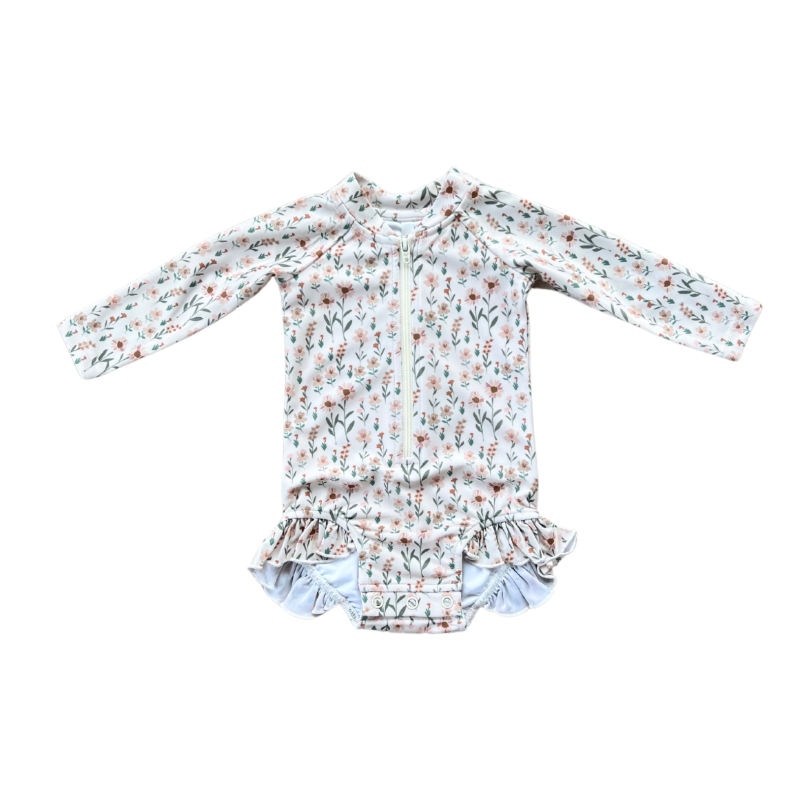 Babysprouts One-Piece Ruffle Rash Guard - Daisy Field