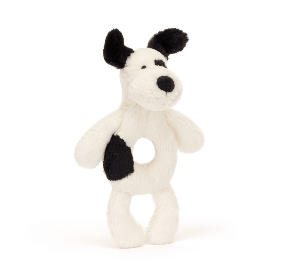 Jellycat Bashful Black & Cream Puppy Ring Rattle