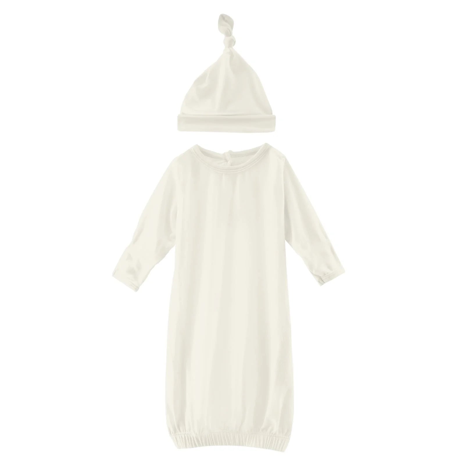 Kickee Pants Layette Gown & Single Knot Hat Set