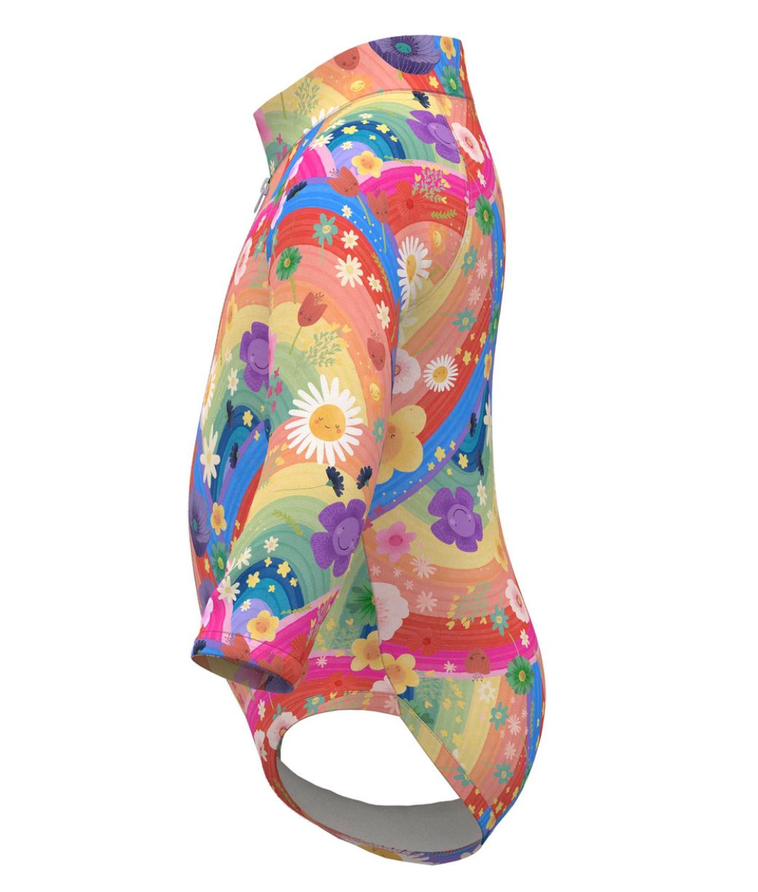 Milktology Rainbow Flowers Zipper Rashguard Bodysuit