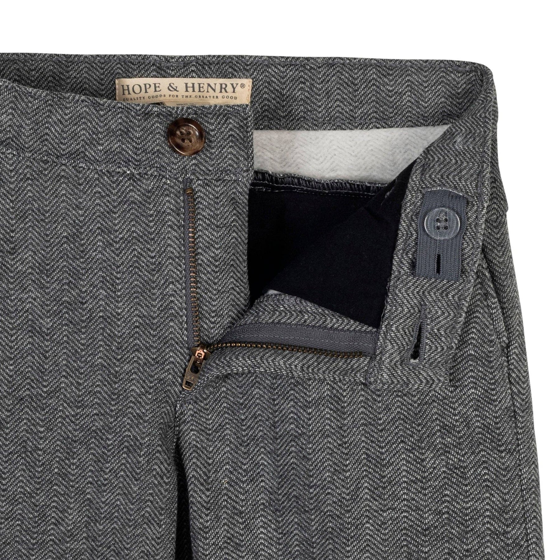 Our tailored suit pant in soft jacquard fleece pairs comfort with picture-perfect style. Features classic styling, faux horn button, functional side pockets, back pockets, and an adjustable inner waistband. So comfortable he won't mind wearing these all day long. Looks great with our matching fleece blazer and collection of organic cotton button downs.