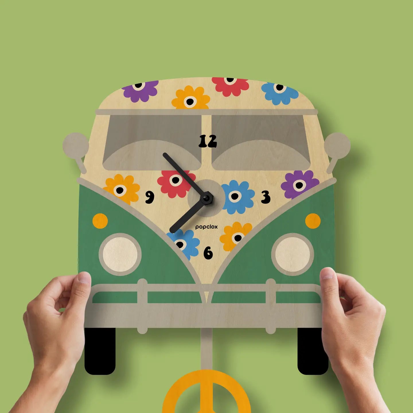 Popclox Peace Bus Pendulum Clock - Wood