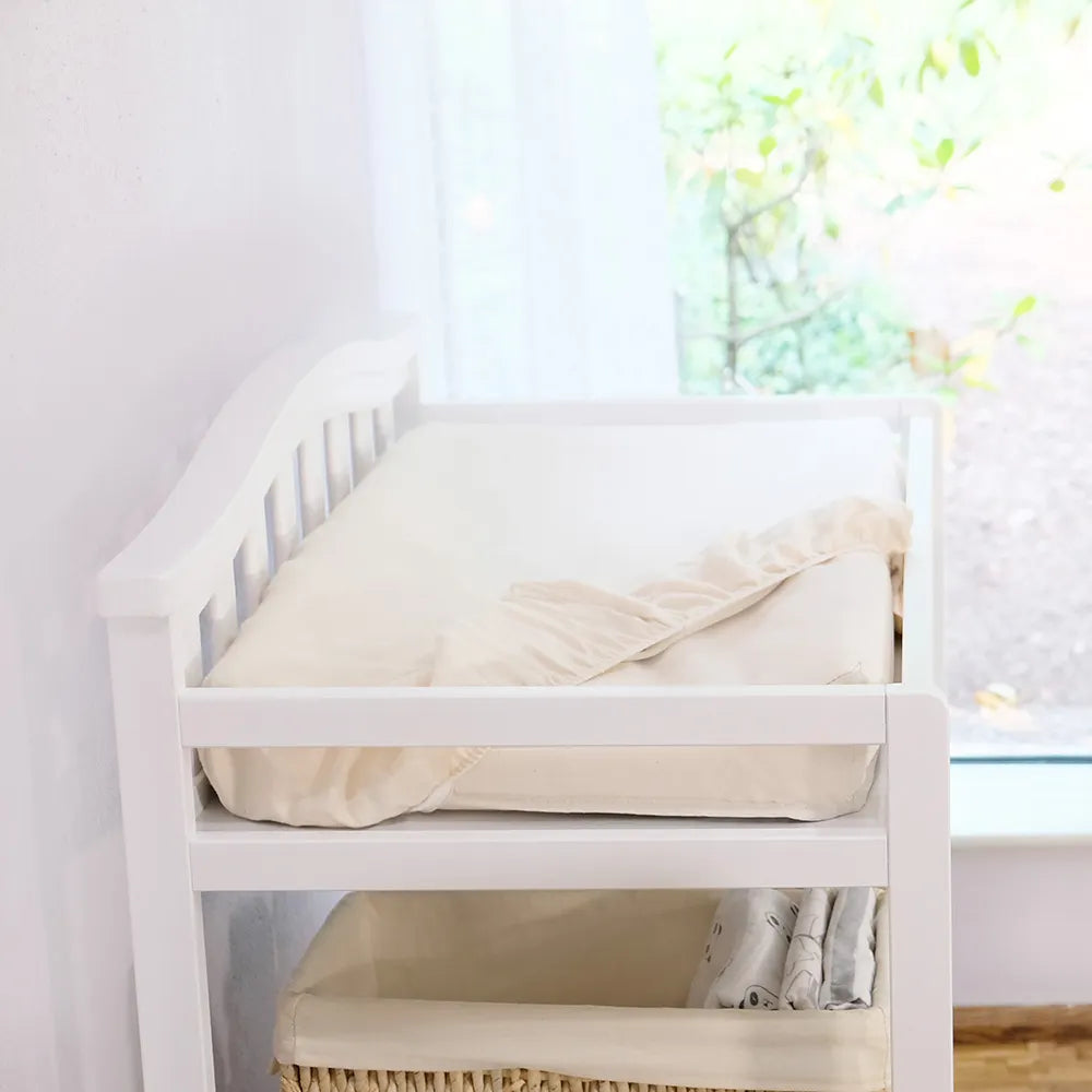 Keep baby snug and secure during changing time with Naturepedic’s Certified Organic Changing Pad! Featuring soft organic cotton fabric with a clear, food-grade waterproof coating made from non-GMO sugarcane, the pad is comfy for Baby and easy to clean. It’s made without common allergens like latex and wool, and the contoured polyethylene core is wrapped in GOTS certified organic cotton for extra comfort. The safety buckle helps to secure Baby in place and snap screws are included to secure the pad to a dresser while at home. If you choose to add on the cover for extra comfort, rest assued that the cotton flannel fabric it is made from is GOTS certified organic cotton as well.
