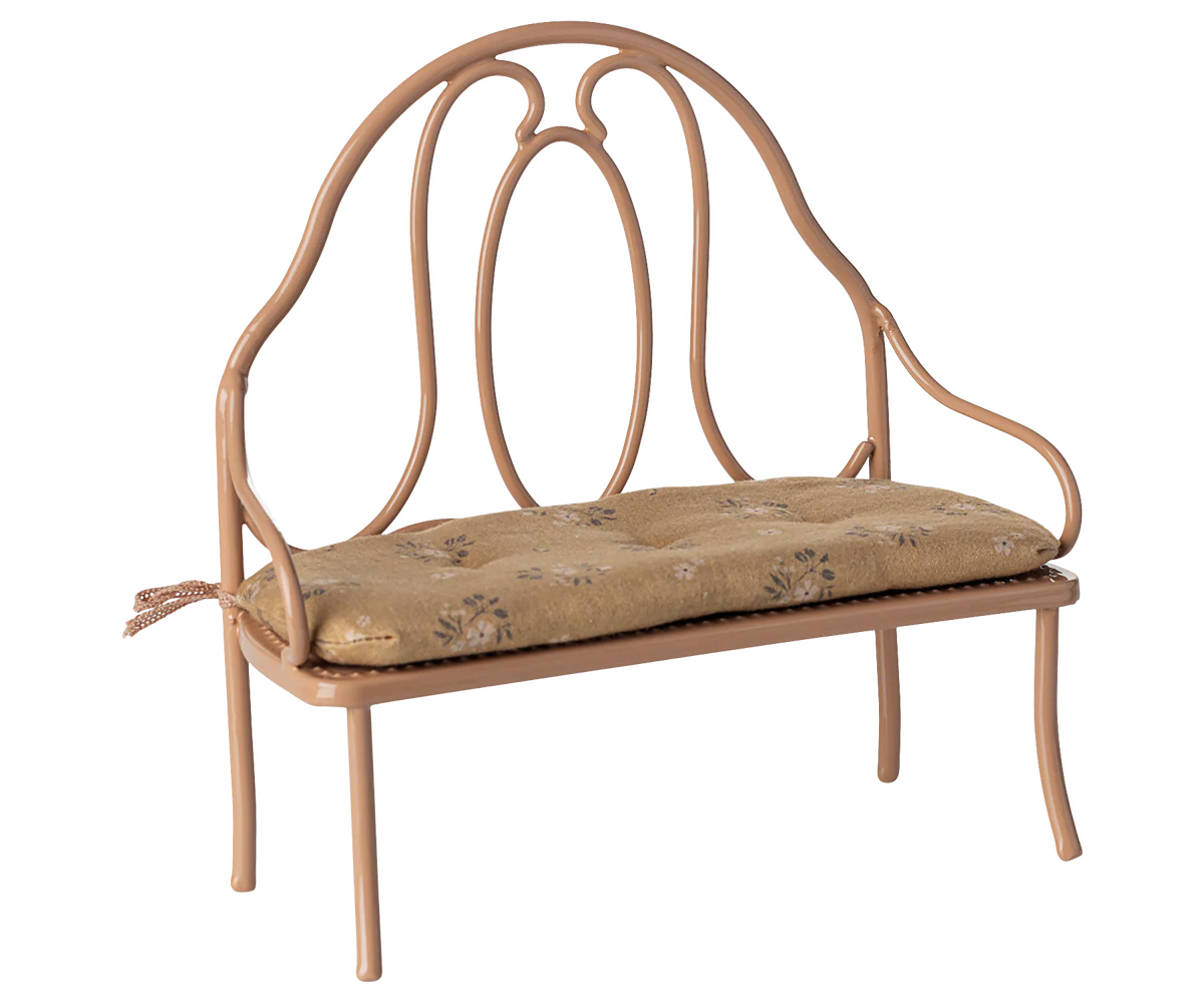 The beautiful vintage bench comes with a soft cushion to secure a comfortable seat. The bench is perfect for a short rest and fits perfectly for the bunny and rabbit size 1 and 2.