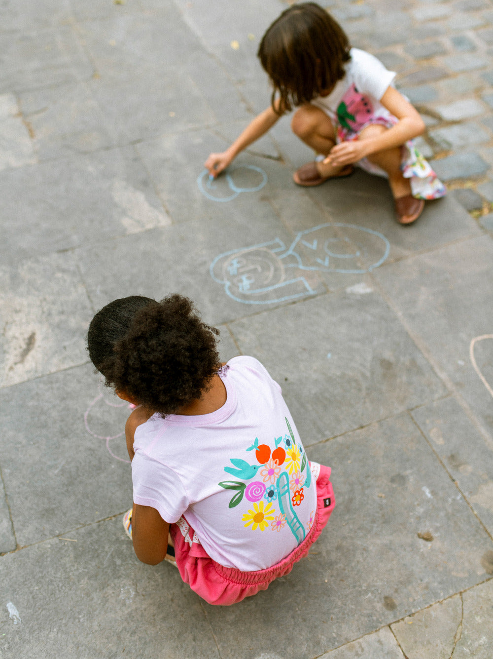This playful tee features a hand-drawn cat crowned with a colorful bouquet on the front, paired with a whimsical floral design that trails down the back. Painterly brushstrokes, cheerful color, and unexpected details make the artwork feel imaginative and full of personality--fun from every angle.