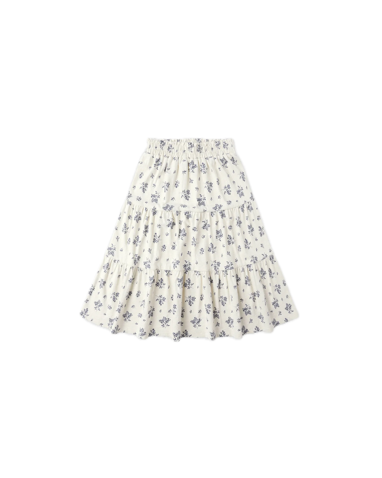 Rylee + Cru Ruffle Tiered Midi Skirt - Blue Floral