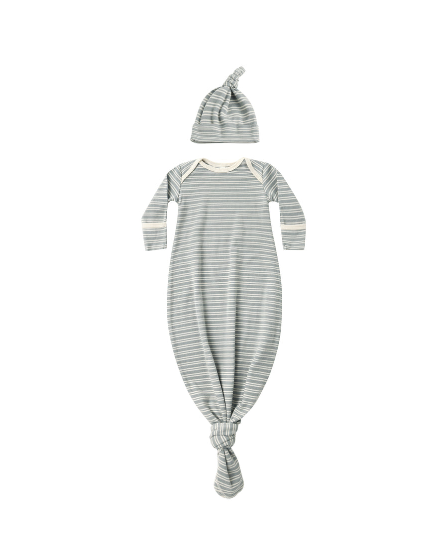 Quincy Mae Knotted Baby Gown + Hat - Dusty Blue