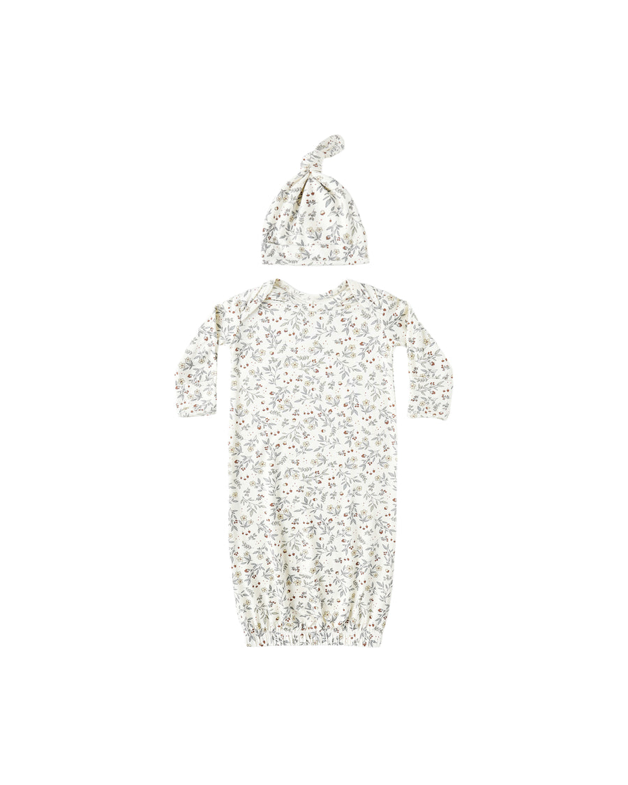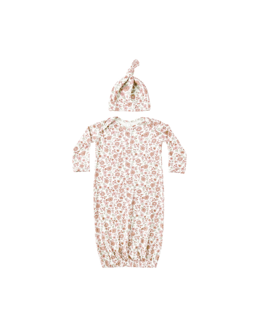 Quincy Mae Knotted Baby Gown + Hat - Rose