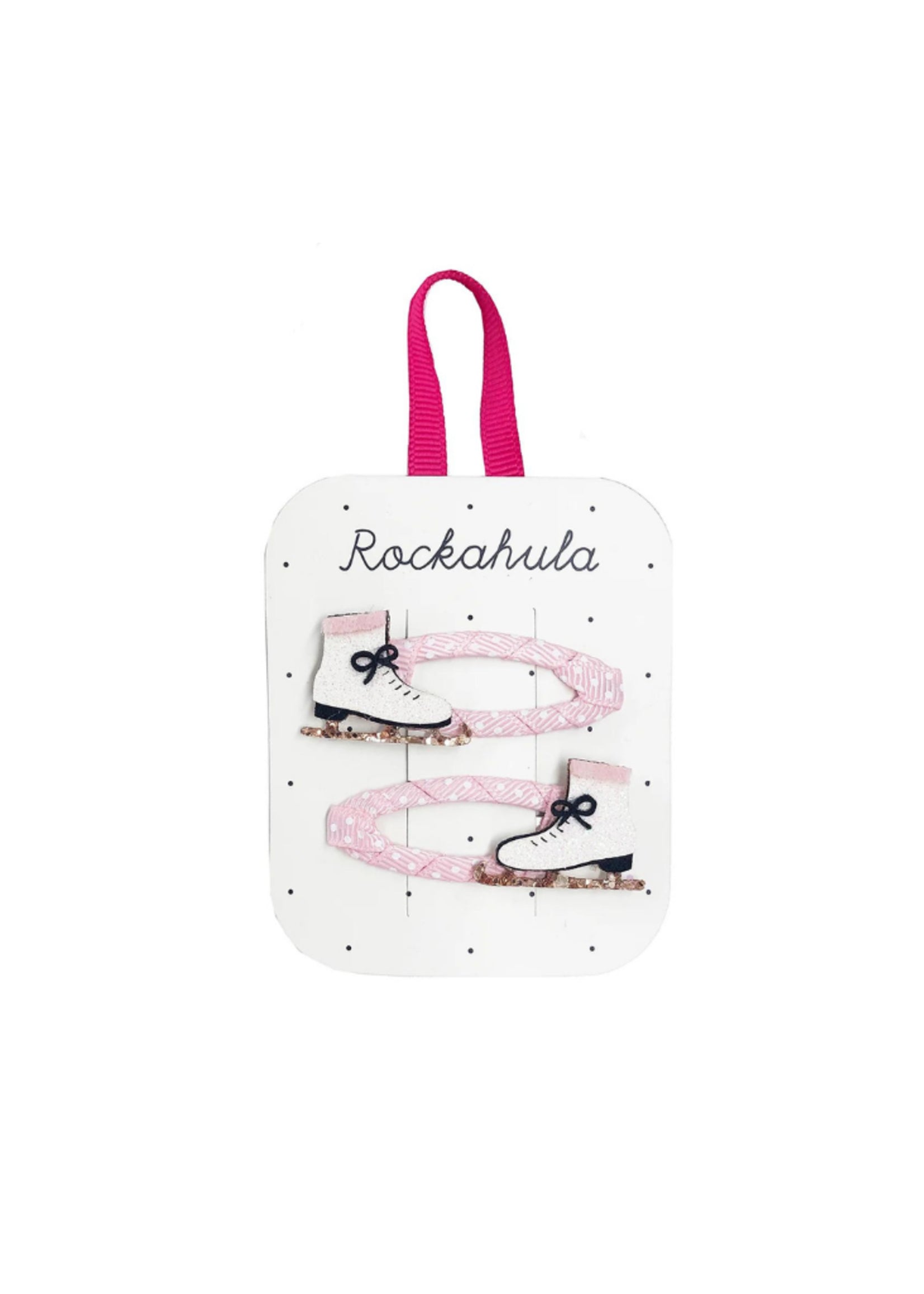 With these beautiful glittery ice skate boots, you can twirl and swirl your way through the cold winter season! Each glittery boot is secured onto a pale pink ribbon wrapped snap clip.