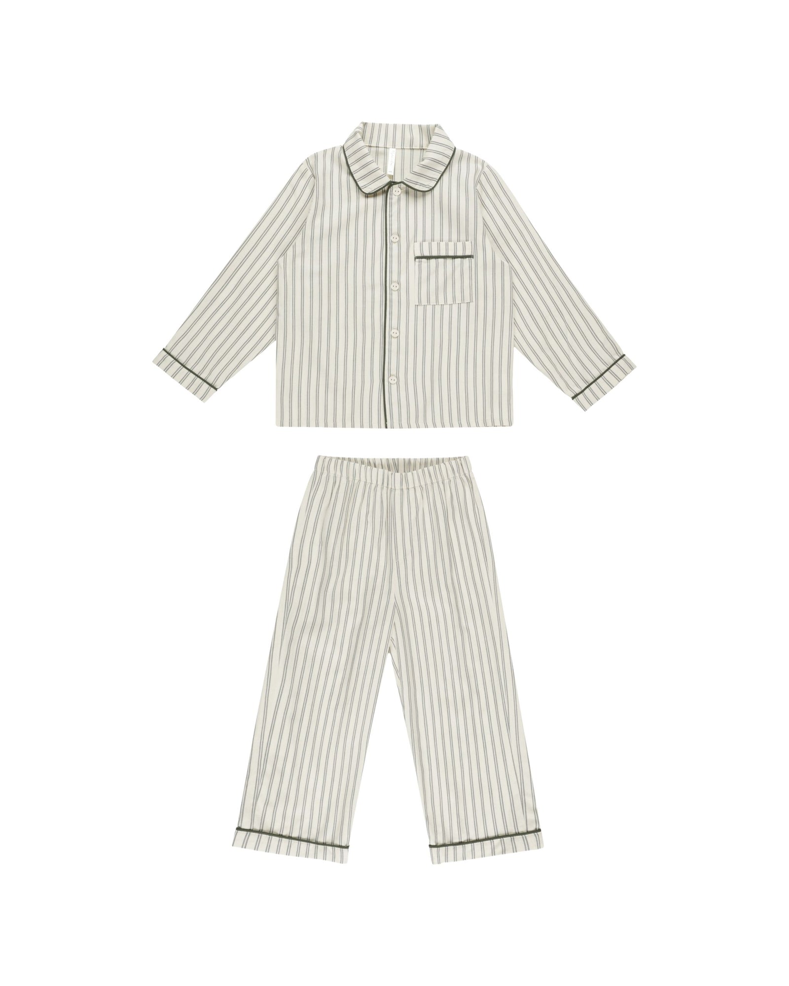 Rylee + Cru Long Sleeve Pajamas - Forest Pinstripe