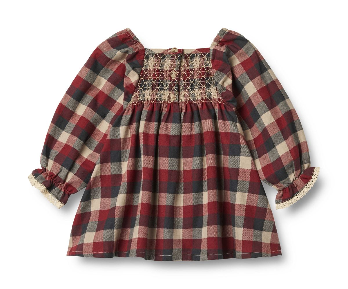 Hope And Henry Organic Peter Pan Collar Ruffle Cuff Dress - London Plaid