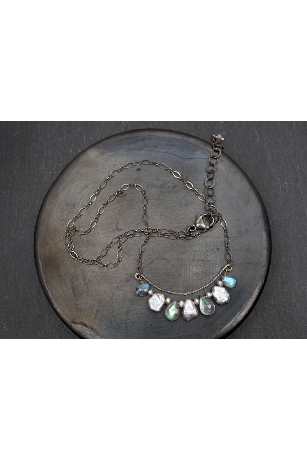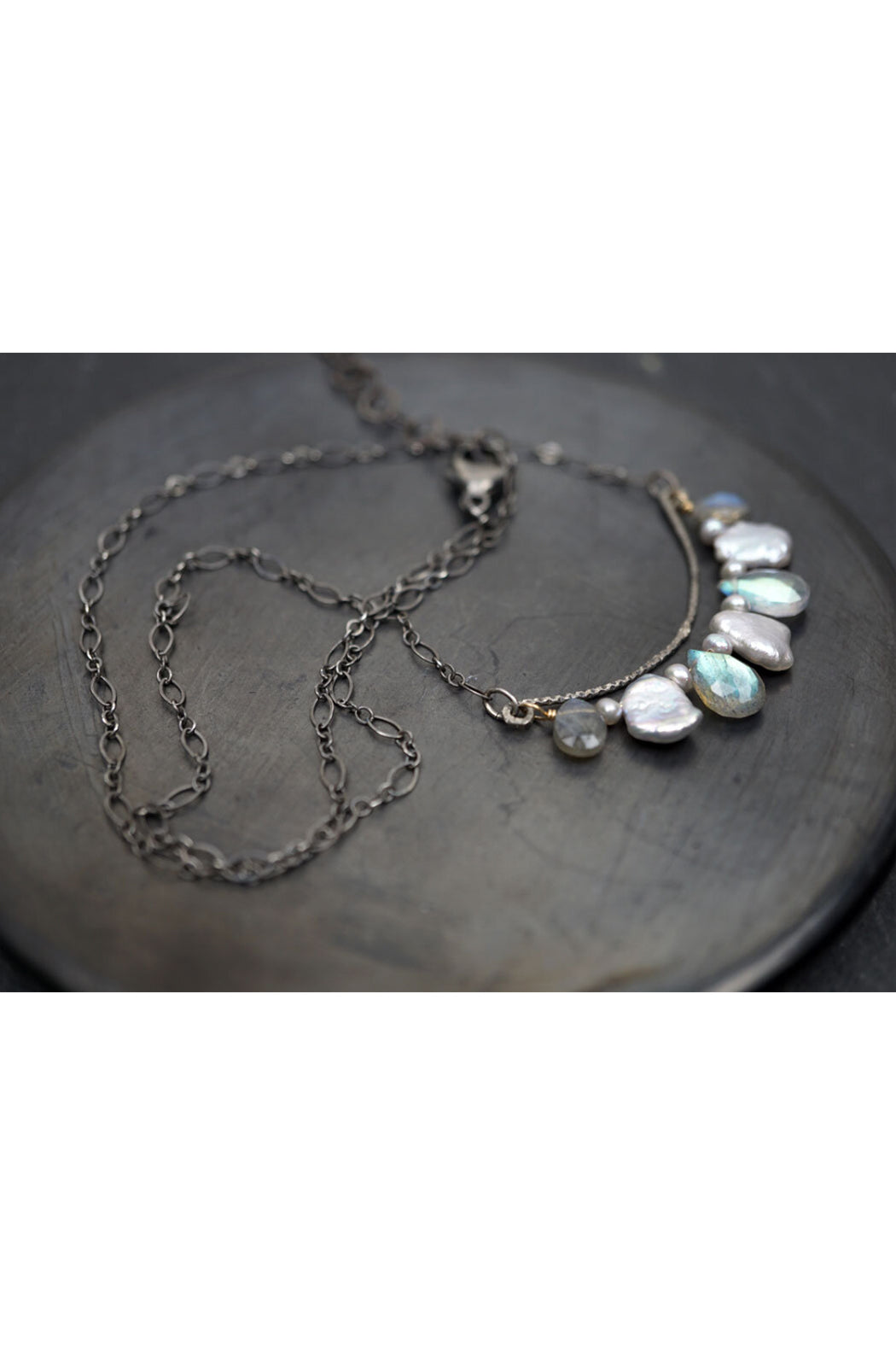Calliope Pearl & Labradorite Wrapped Bar Necklace