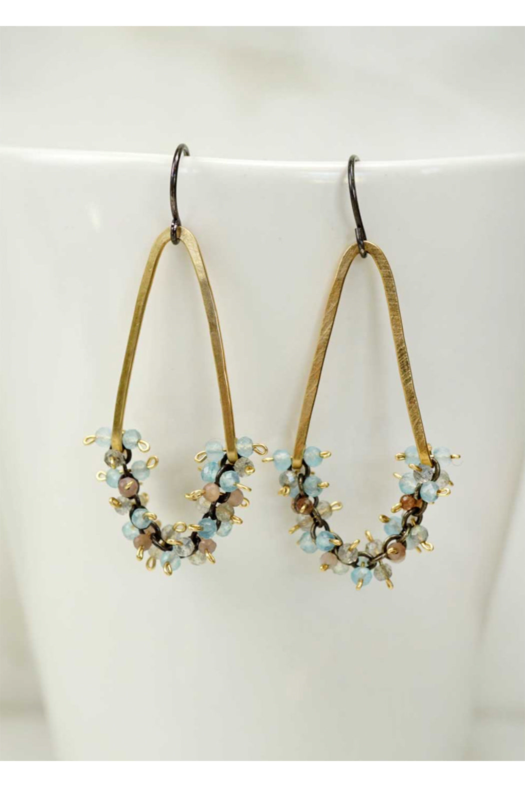 Calliope Hammered Gold Triangle With Chalcedony/Chocolate Moonstone Earrings