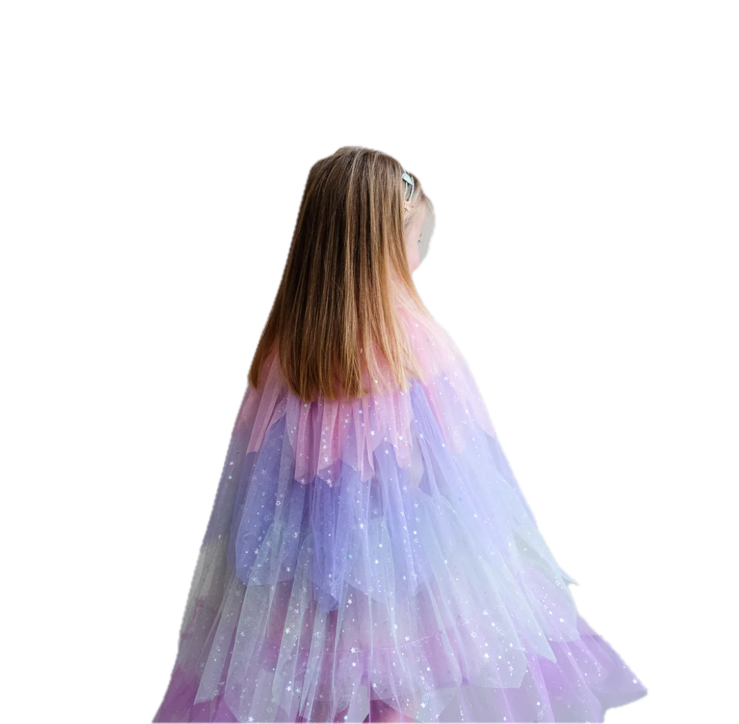 Twirl into pure enchantment with Mimi and Lula's dreamy Scallop pastel cape! Sprinkled with shimmering holographic stars that catch every ray of light - it’s perfect for little dreamers who love to play dress up! Why not pair with our matching tutu for the full 'fit!