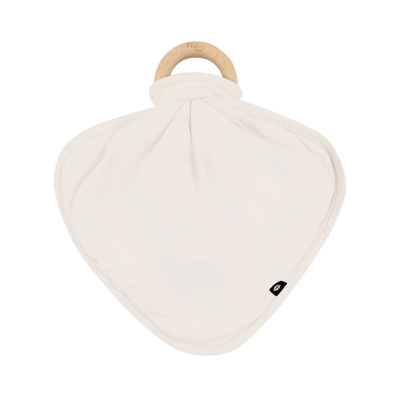 Our lovey is a mobile and attachable mini security blanket, made from the same material as our beloved sleep bags. It comes with a detachable ring made from all-natural beech wood to relieve teething symptoms. Polished to smooth perfection, the wooden ring has no treatment or coating so you can rest easy knowing your baby is safe. Easily unthread the ring and attach the lovey to baby’s pacifier, teether, toy, or our ring sling!