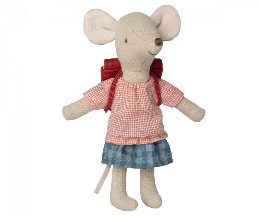 Maileg Tricycle Mouse With Bag, Big Sister - Old Rose