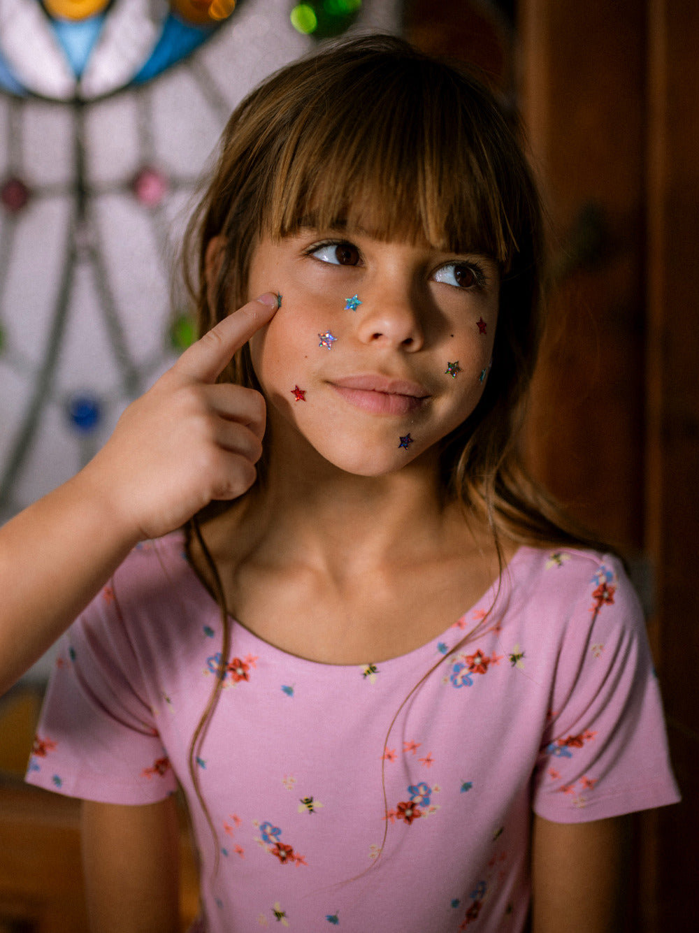 This easygoing dress is brought to life with expressive prints that feel bright, playful, and perfect for spring days. The empire silhouette creates a floaty, comfortable shape, while soft gathers add movement kids love. Puff sleeves and gentle elastic details give it a dressed-up look that still feels effortless. A versatile favorite for school days, weekends, and everything in between. Pairs perfectly with leggings or Somersault Shorts for monkey-bar-friendly, play-all-day versatility.