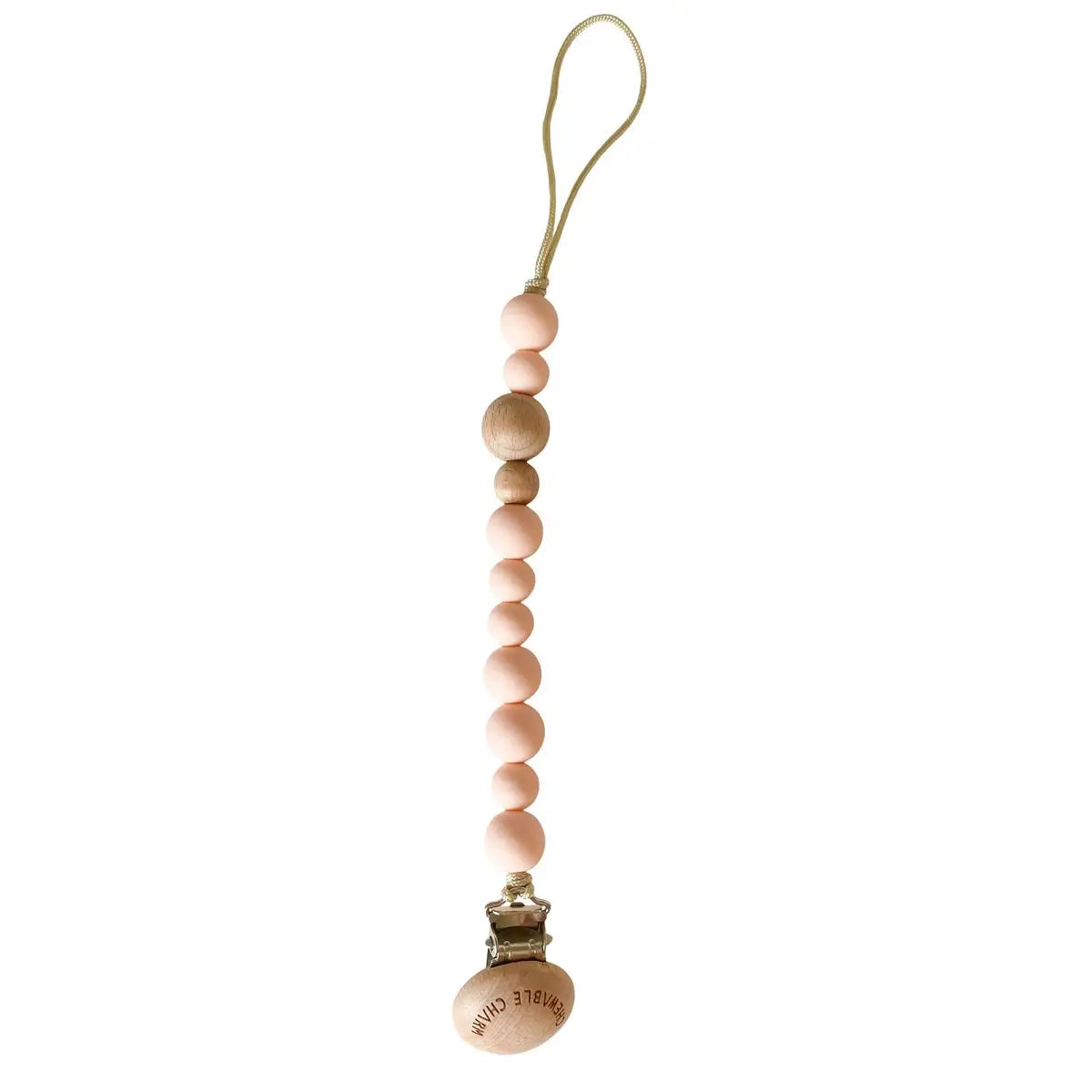 Chewable Charms Classic Pacifier Clip - Wood + Pale Blush