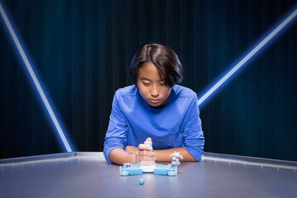Step into the high-energy, fast-paced world of Doteki, where YOU are the action in every epic battle! Doteki is more than a game—it’s a fully immersive battle system that you control and expands to include any number of players. Using Doteki battle controllers to create dynamic arenas that shift from side to side as you play, you and your friends will engage in battles that put your reflexes and strategic thinking to the test. Your health key is your lifeline in the heat of battle. It tracks your life points and determines how long you can stay in the fight. As health keys lose points, every move matters, every hit is critical, and every successful block brings you closer to the ultimate win. Align yourself with one of four elemental factions—Arctos, Heatoru, Organika, and Spiritek—and battle with unique collectable characters that are exclusive to each set. With a growing range of champions to choose from, customizable setups, and endless opportunities for multiplayer action, Doteki transforms gametime into an electrifying competition. Are you ready to claim your champion and outmaneuver opponents? This Arctos Battle Training Set includes the exclusive character Wulfrost and gives you the chance to fine tune your skills with ricochet units that create a practice arena complete with blitz targets. When you’re ready, it easily connects to other Doteki sets for multiplayer battles. Or, if you want to come out of the gate fighting, a Multiplayer Battle Pack (sold separately) comes with two battle controllers, multiple health keys with different life points, and an ion dropping catalyst to get the action started. Whether you’re practicing, battling one-on-one, or playing with a massive group of friends, Doteki is the ultimate battle full of nonstop excitement. Get ready to grab your battle controller to defend your target, deflect the ion, and defeat your opponent!