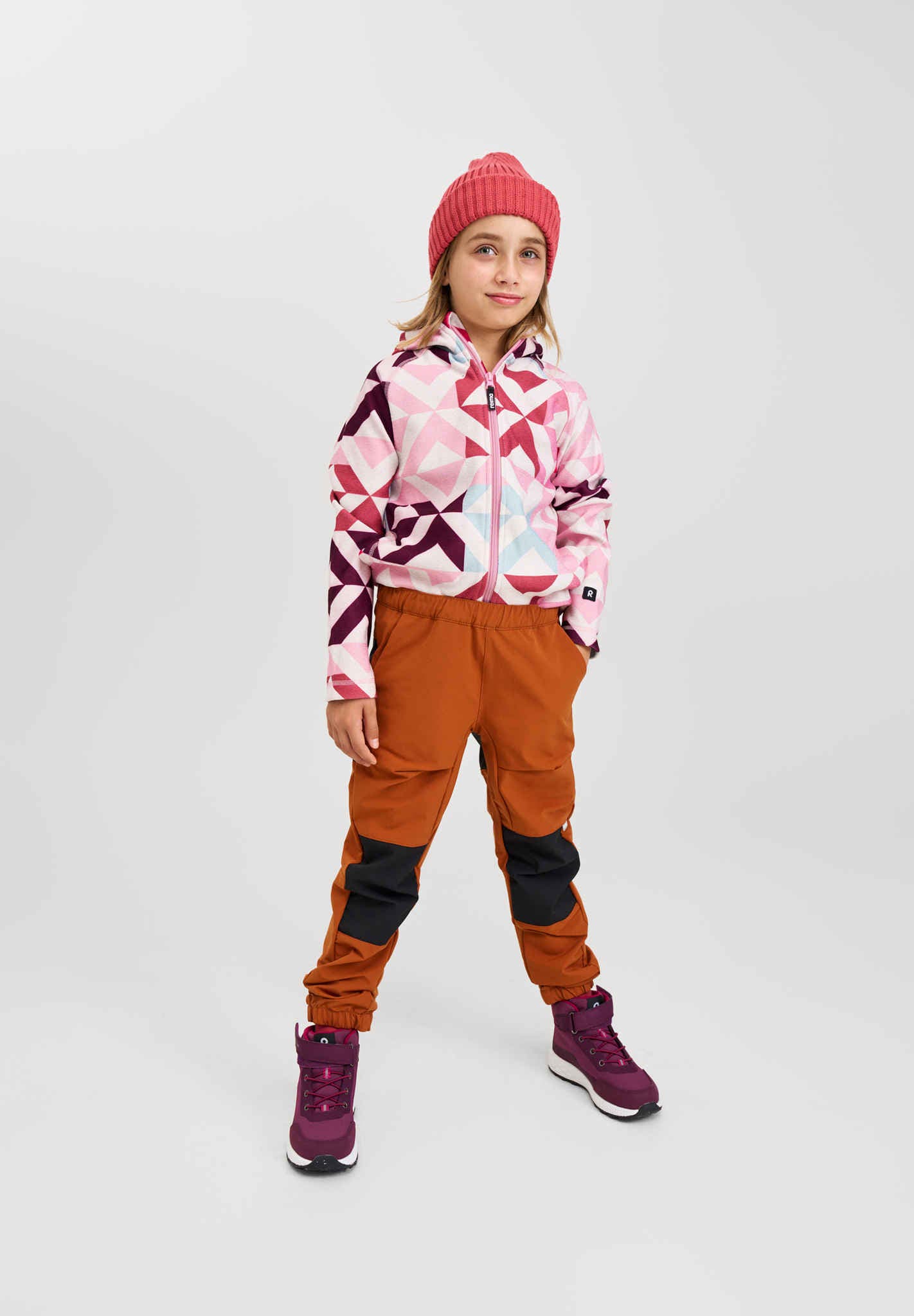 Kids' waterproof softshell shoes Hiipien are comfortable and protective. The waterproof membrane in the upper keeps the feet dry. The flexible, light sole offers a good grip when kids are on the move, and the elastic lacing makes for a snug fit. Reflective details are good to have in the dark. The removable soles with Reima happy Fit print help you check the size easily. These shoes are tested to be warm enough for -10 °C, so we can recommend them for winter use, too.