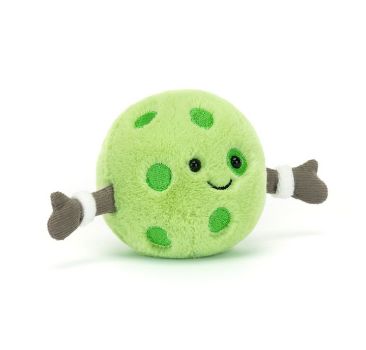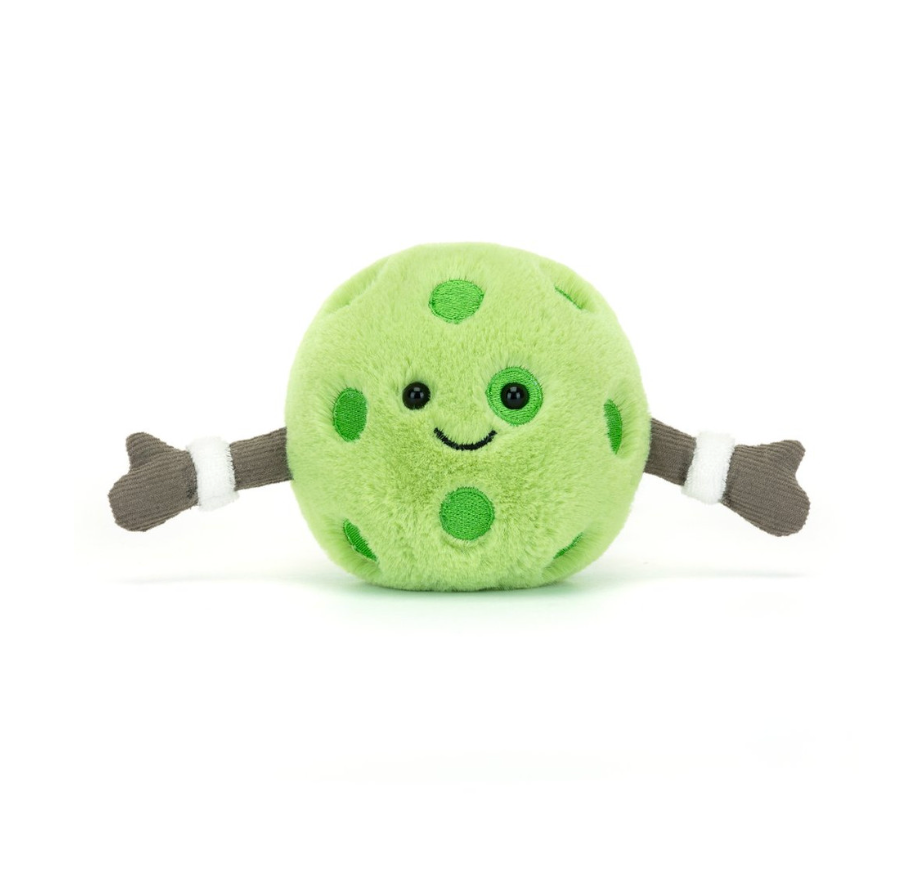 A perky green go-getter who is constantly ready for a game (or two), Amuseables Sports Pickleball loves sports so much she’s also a part-time umpire!