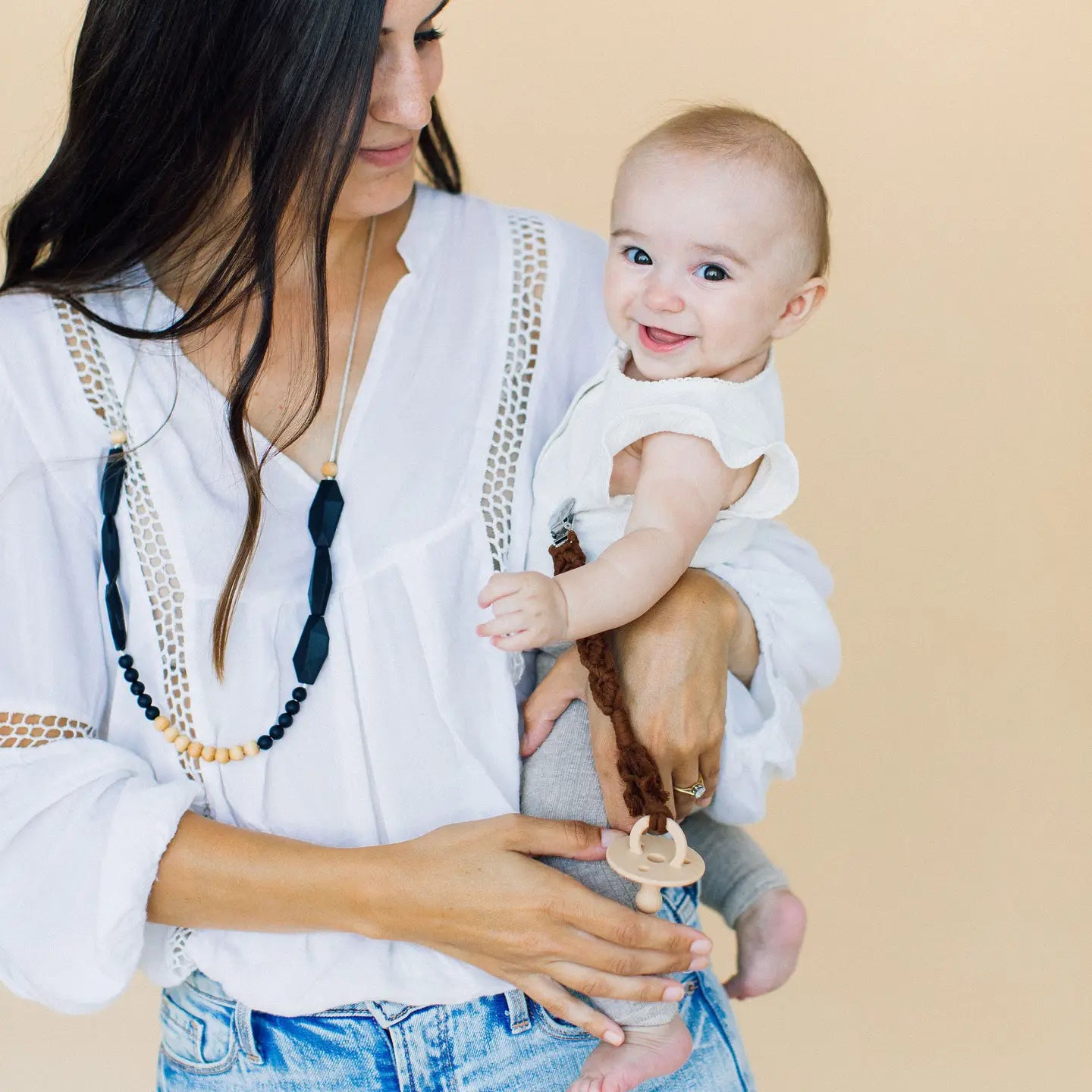 Chewable Charms Classic Pacifier Clip - Wood + Pale Blush