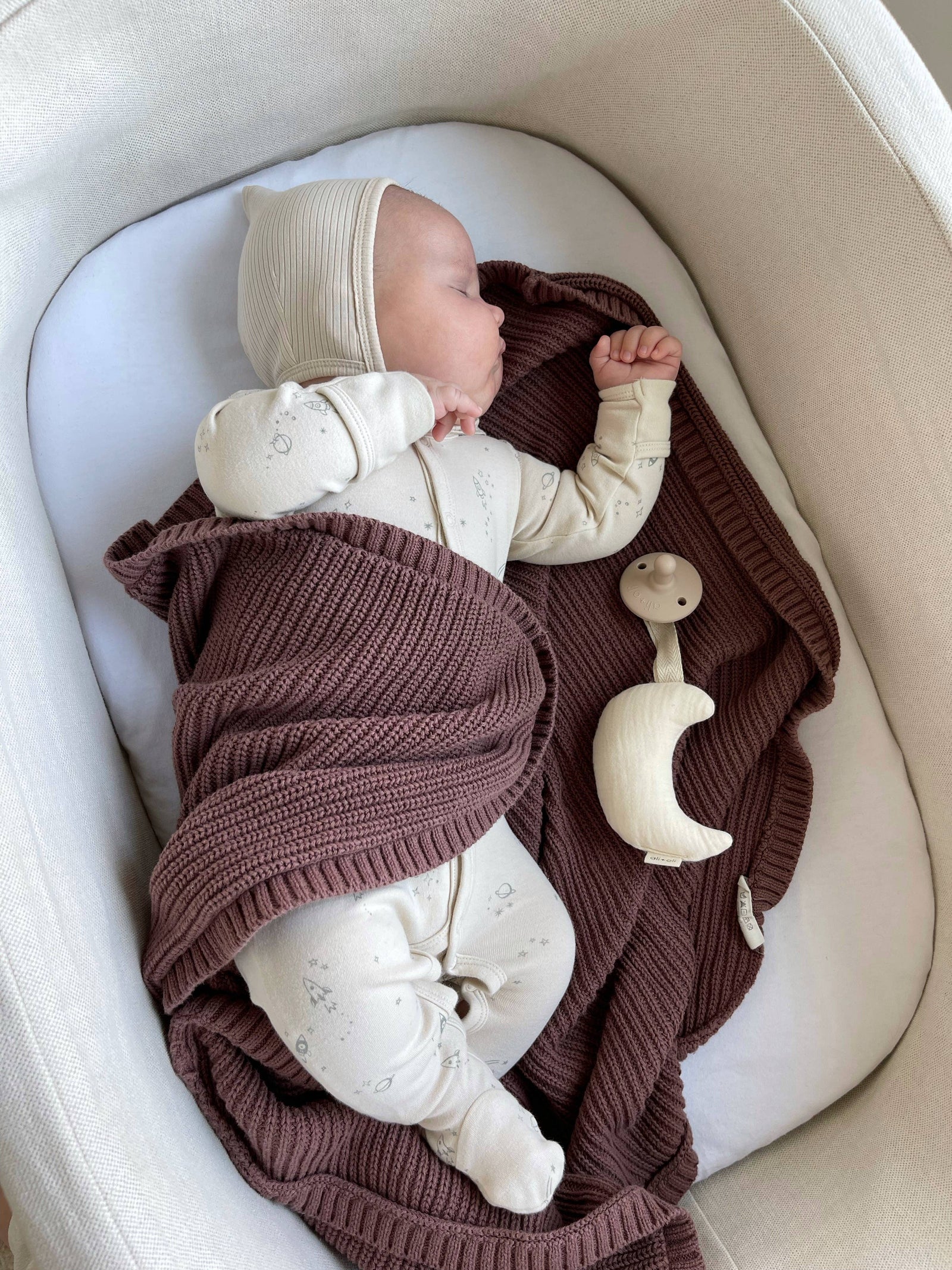 Ali + Oli Plush Moon Pacifier Holder - Muslin Ivory