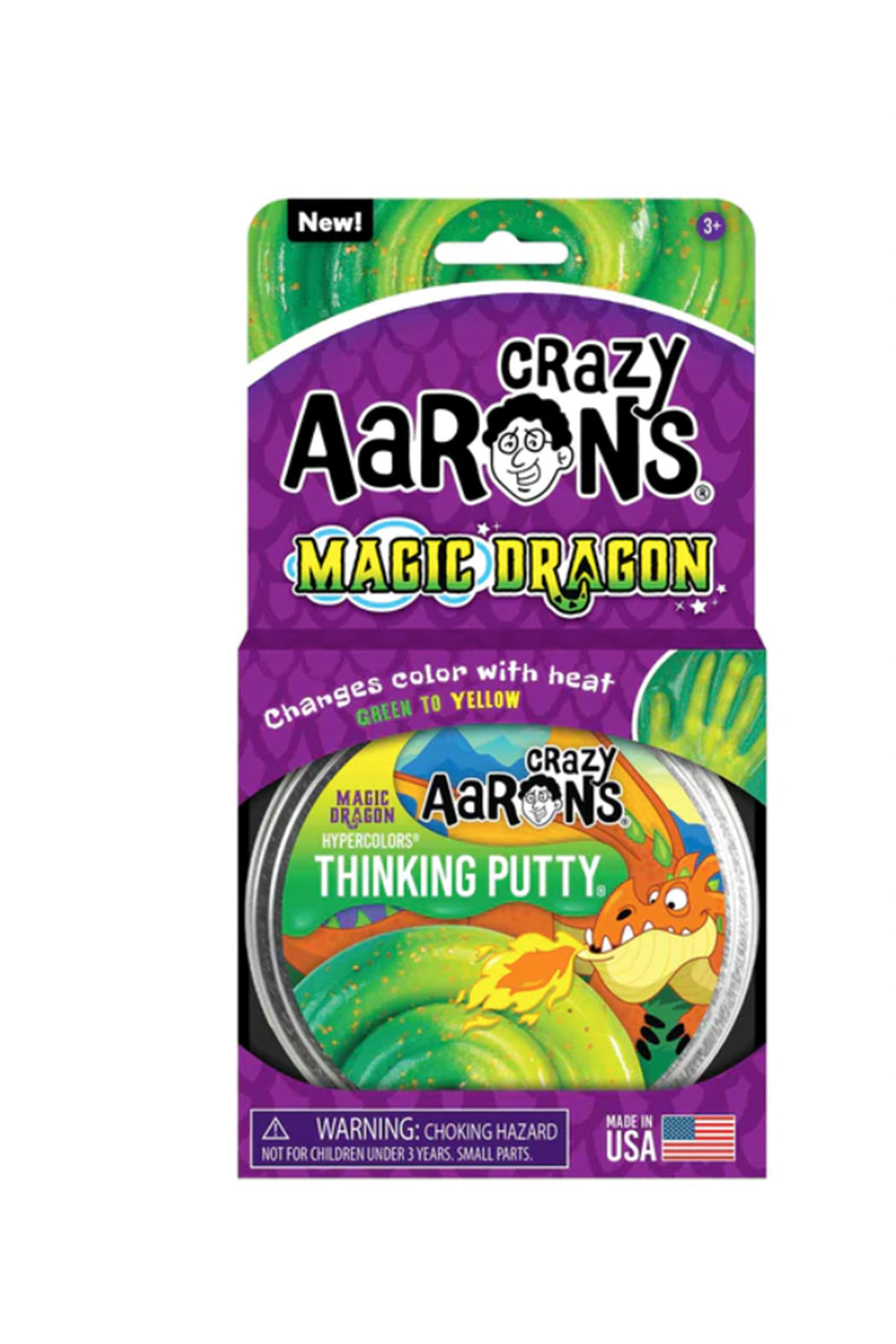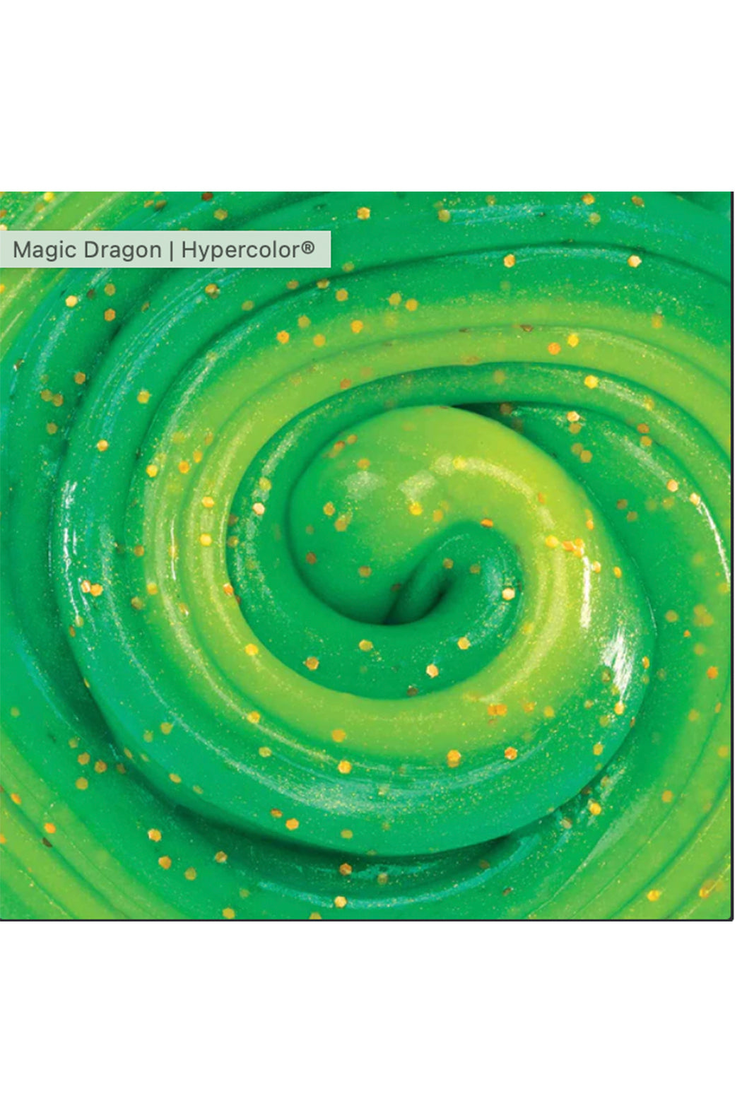 This charming creature can be your enchanted best friend. Magic Dragon Thinking Putty® includes the marvelous Hypercolor® effect and changes from forest green to golden yellow using the heat of your hands. The magical bronze sparkles will captivate your gaze!